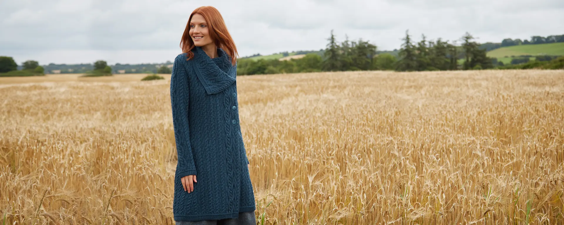 Experience the Blarney Aran Experience at Blarney Woollen Mills, where pride and heritage come together in a unique journey of craftsmanship. At our mill, the past and present intertwine, celebrating the timeless beauty and cultural significance of Irish knitwear. Our personalized Aran Knitwear service invites you to wear your heritage with pride and showcase your connection to Irish history. Each piece we create reflects the unique story of its wearer, crafted with meticulous attention to detail and love.