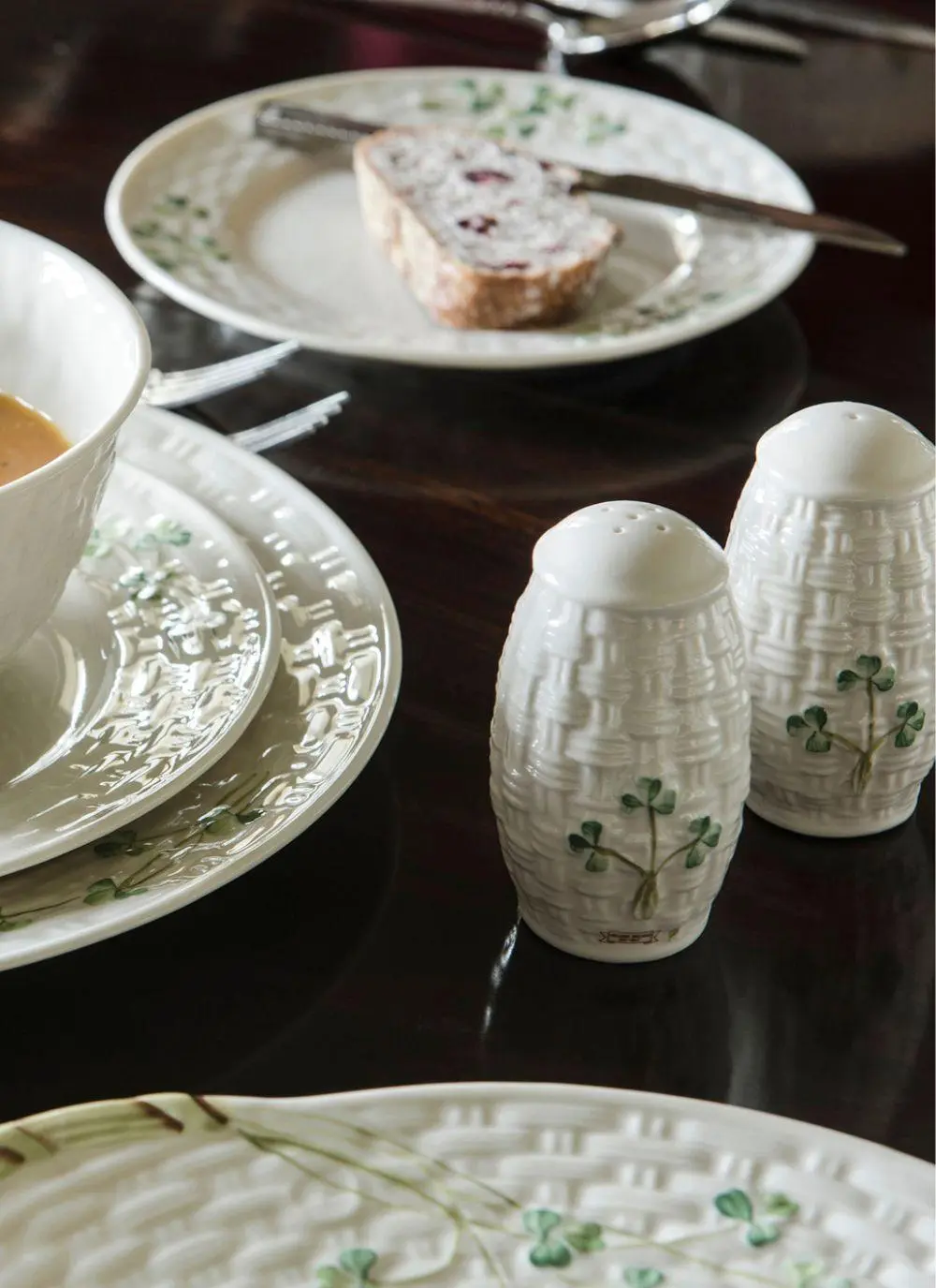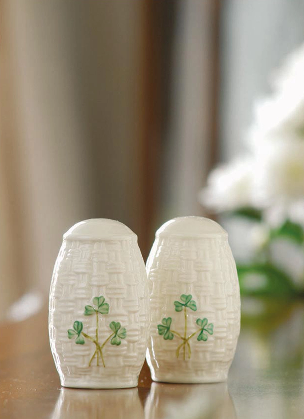Belleek Shamrock Salt & Pepper Set