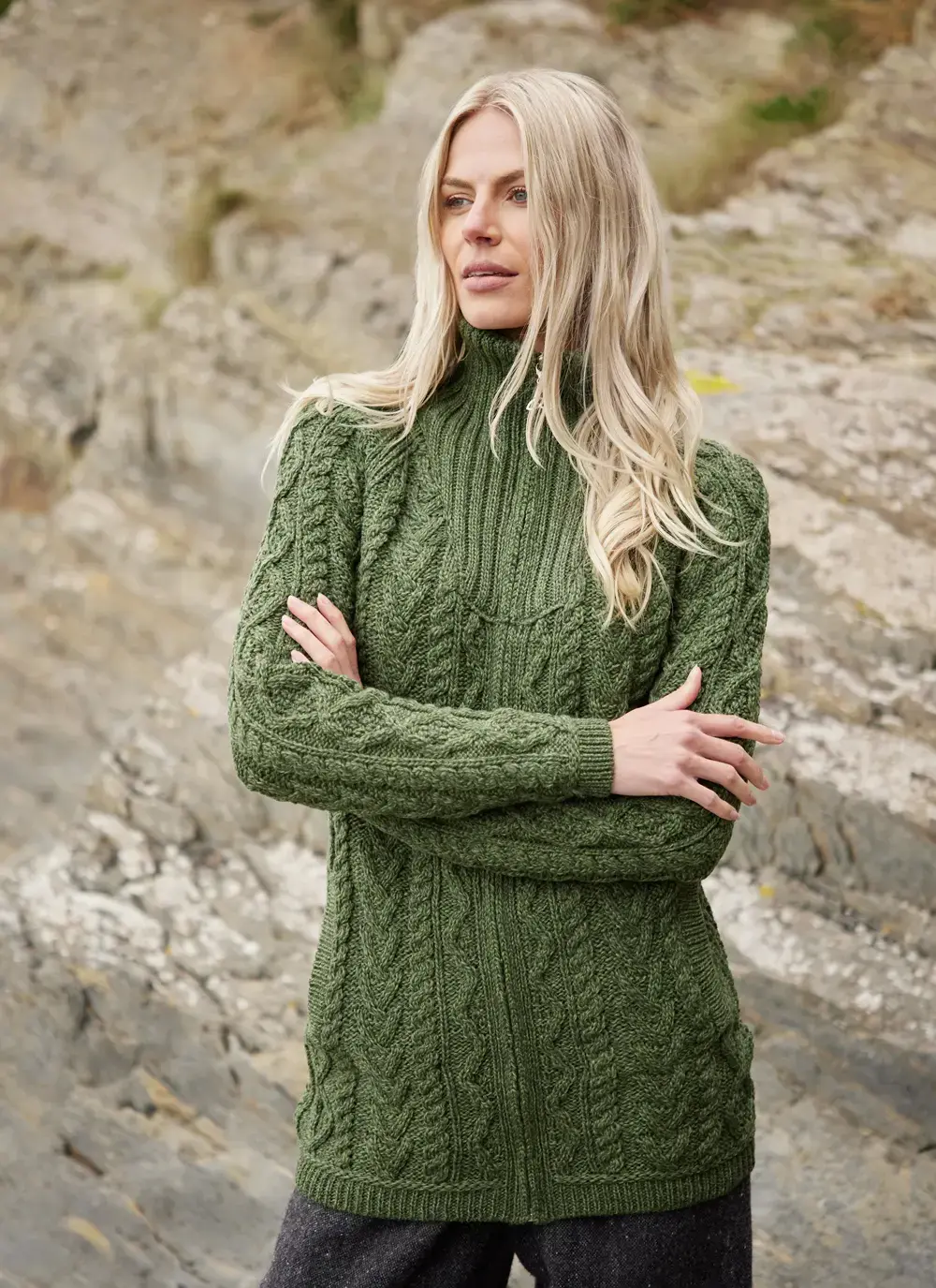 Ella Double Collar Aran Zip Cardigan