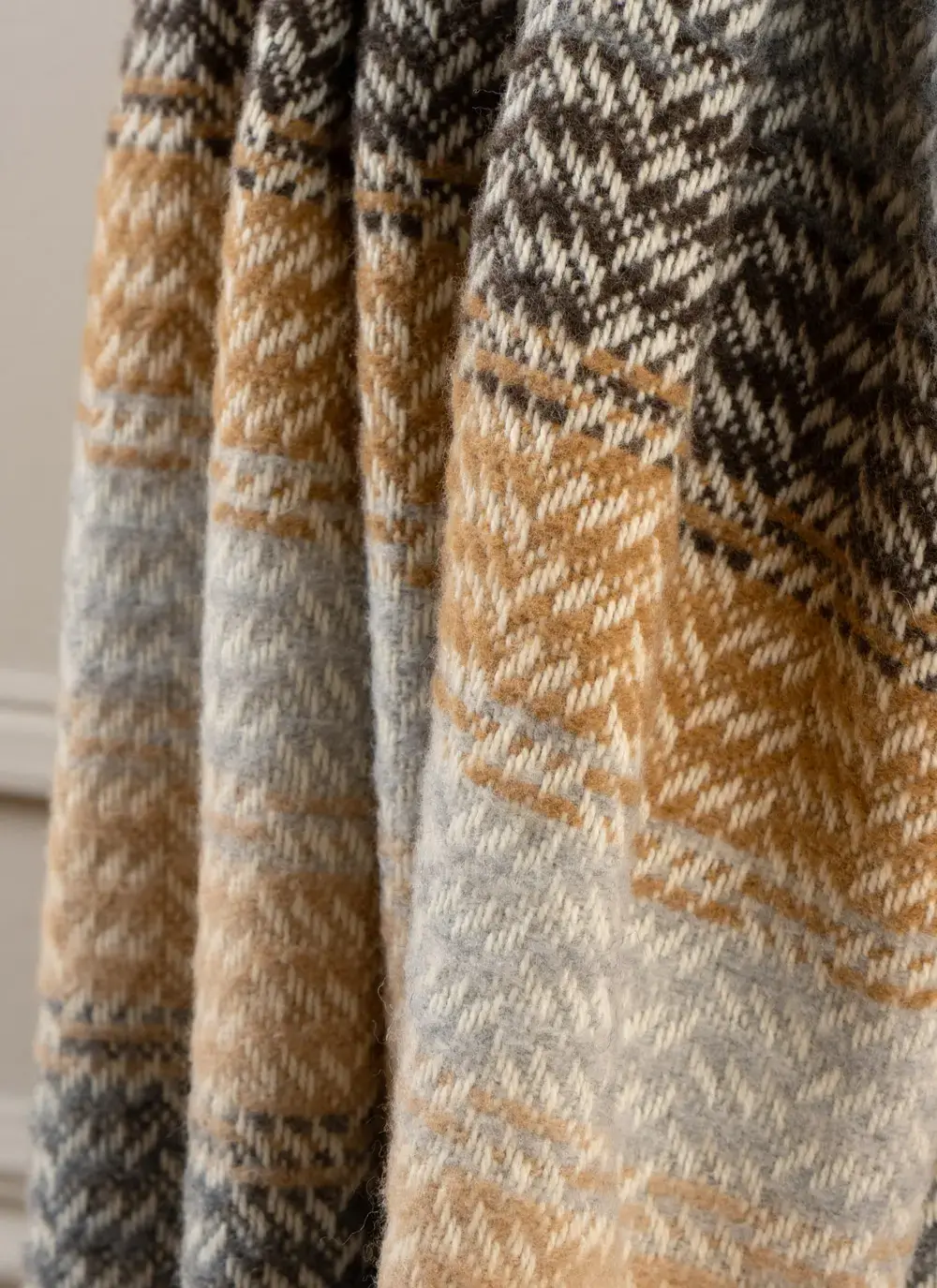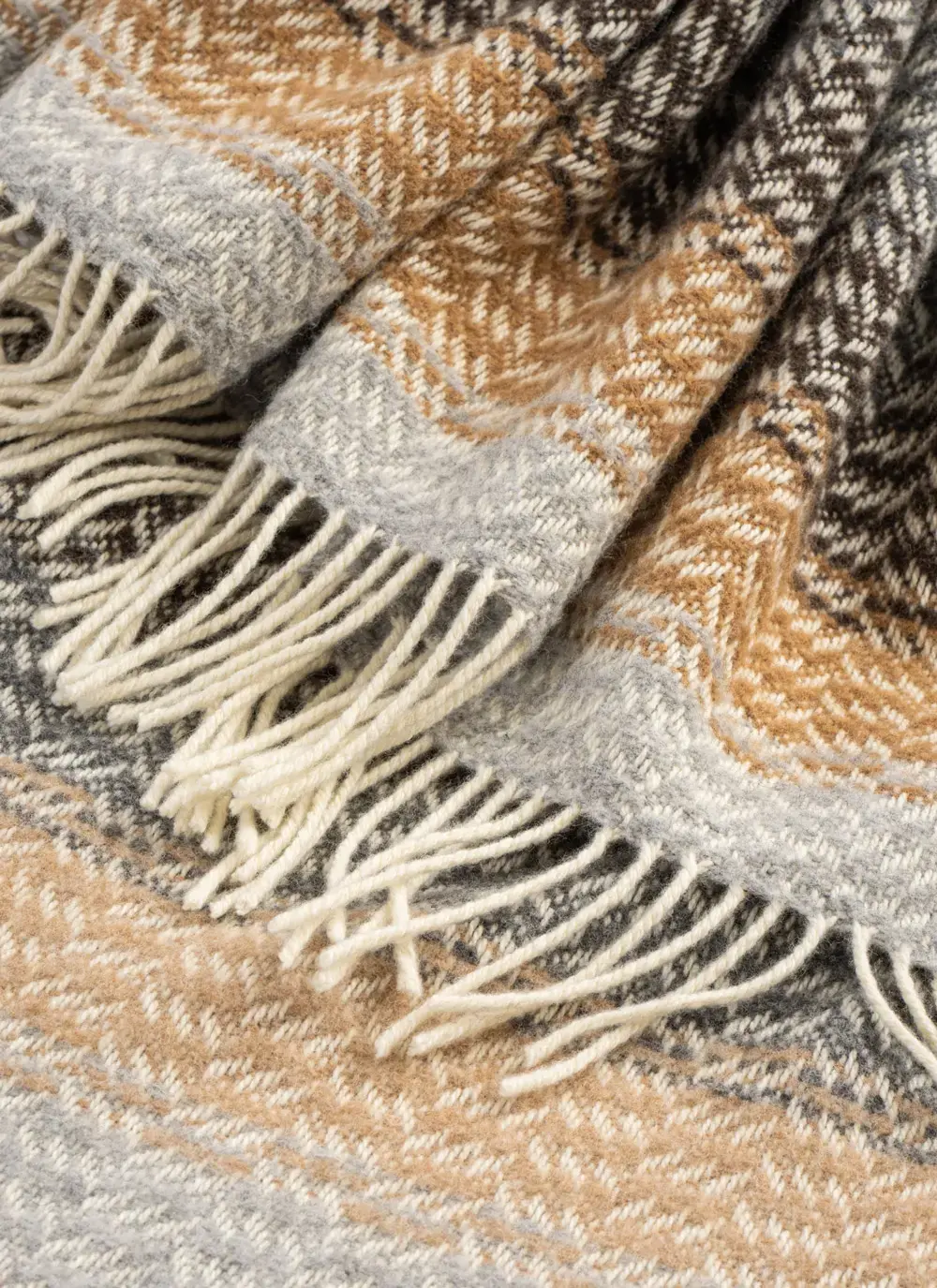 Beige Herringbone Wool Cashmere Throw