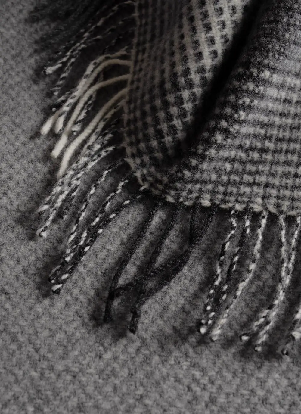 Grey Herringbone Wool Cashmere Throw