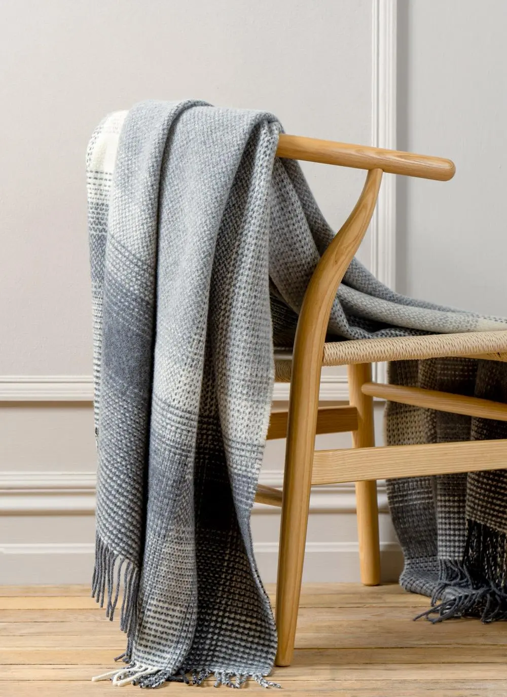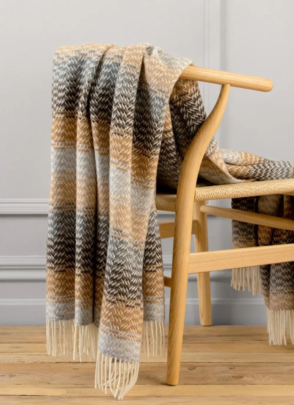 Grey & Cream Herringbone Wool Cashmere Throw