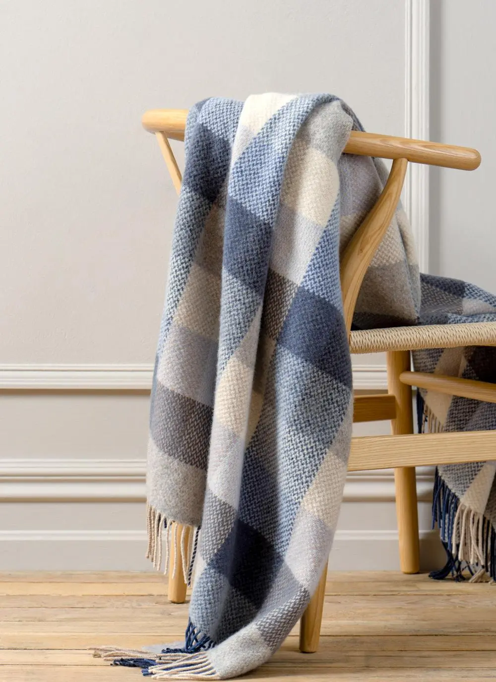 Ocean Check Herringbone Wool Cashmere Throw
