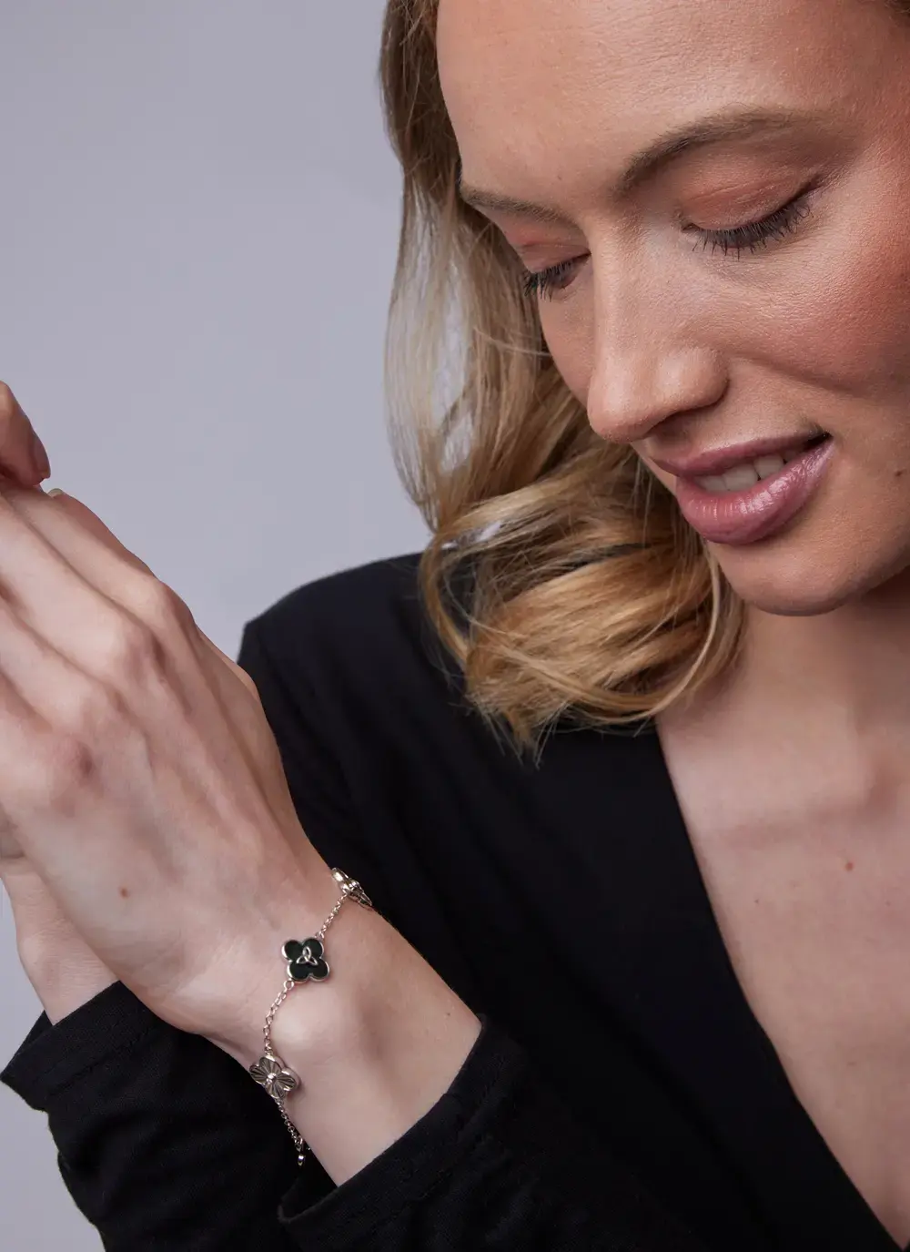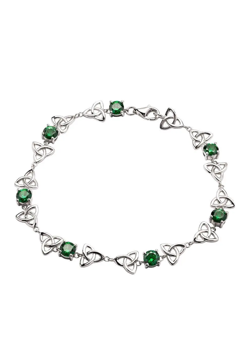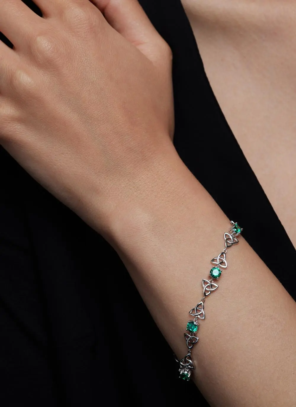Sterling Silver Trinity Knot Bracelet with Green Cubic Zirconia