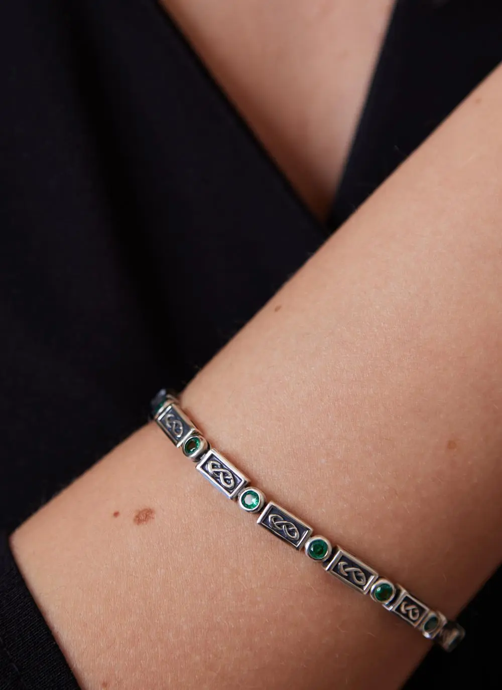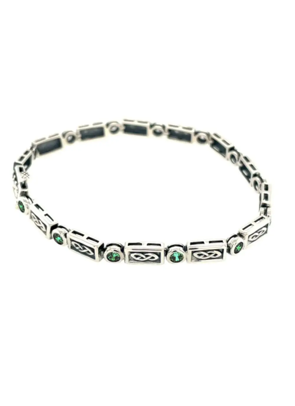 Sterling Silver Celtic Bracelet with Green Cubic Zirconia