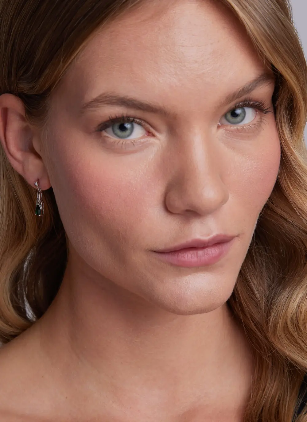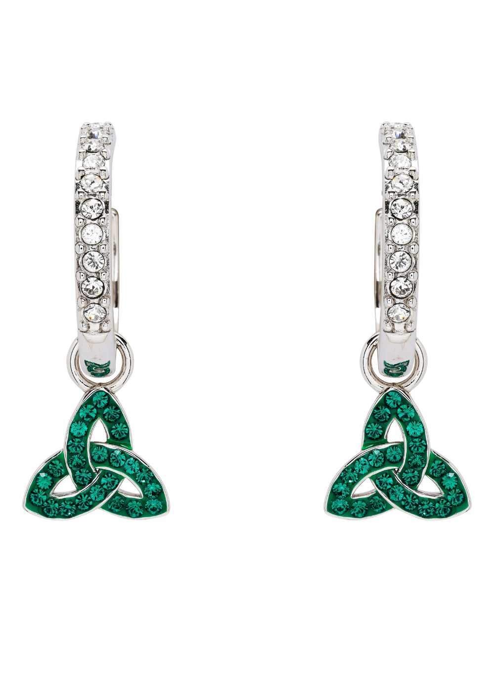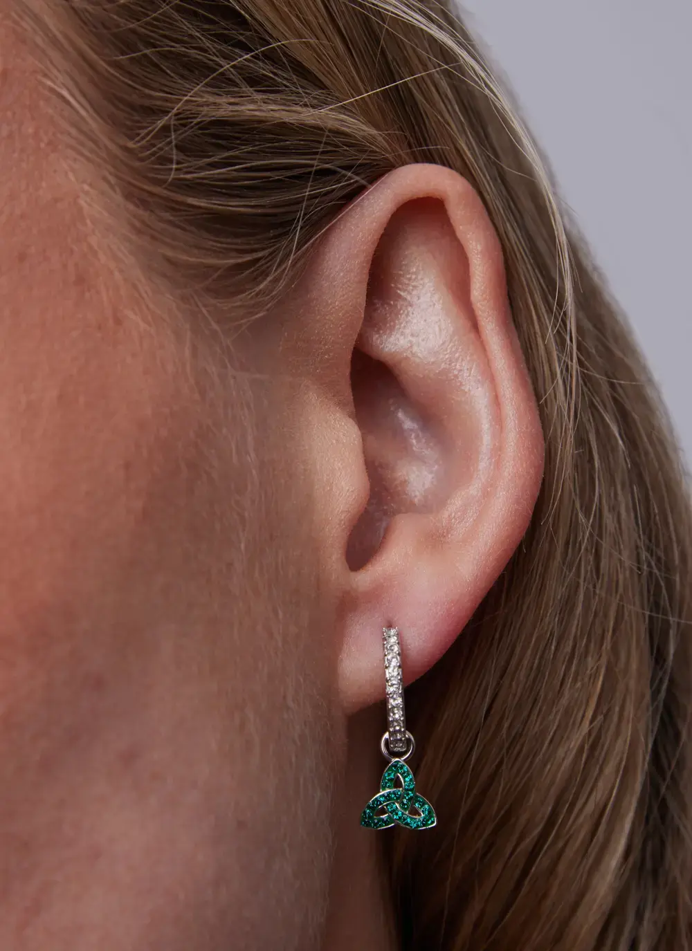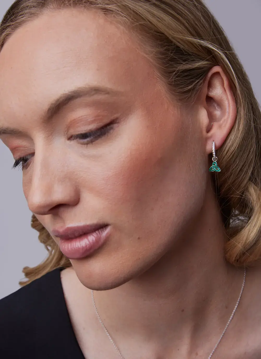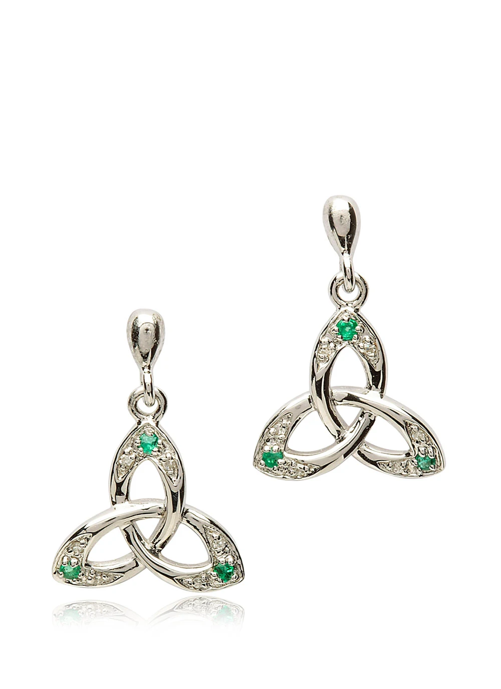 Sterling Silver Celtic Trinity Knot Earrings with Diamond & Emerald
