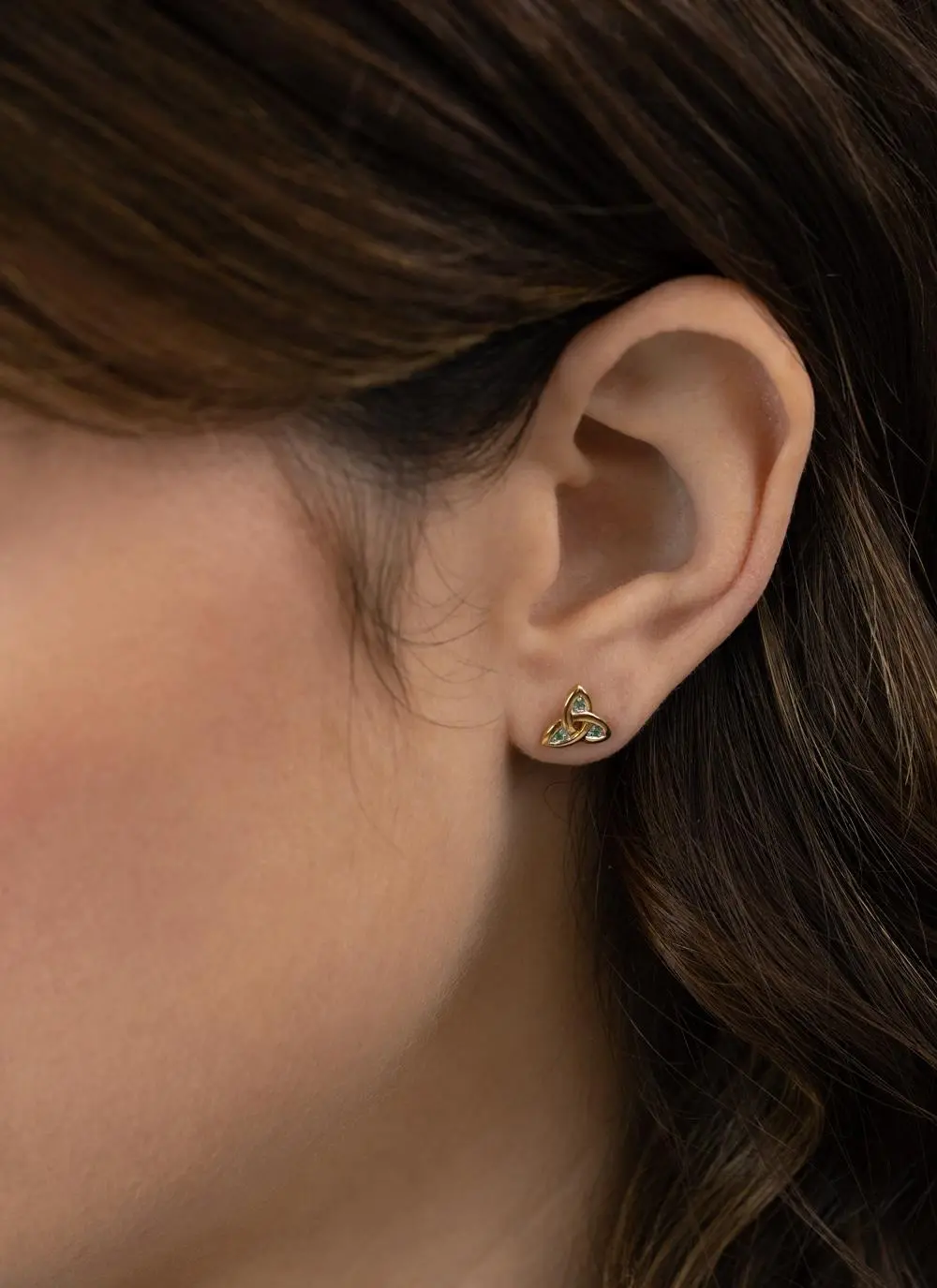 14ct Gold & Emerald Trinity Knot Stud Earrings