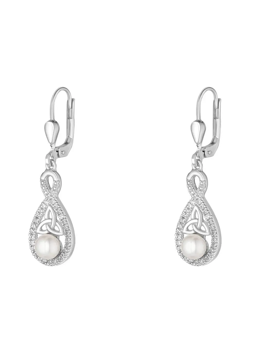 Sterling Silver Pearl & Crystal Trinity Knot Drop Earrings