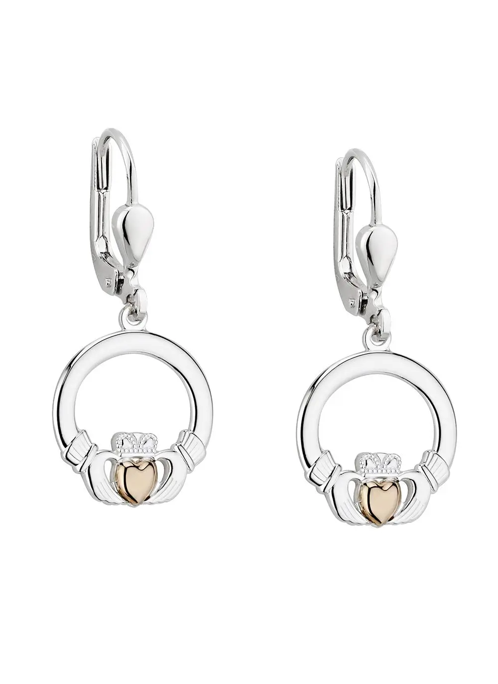 10ct Gold & Sterling Silver Claddagh Drop Earrings