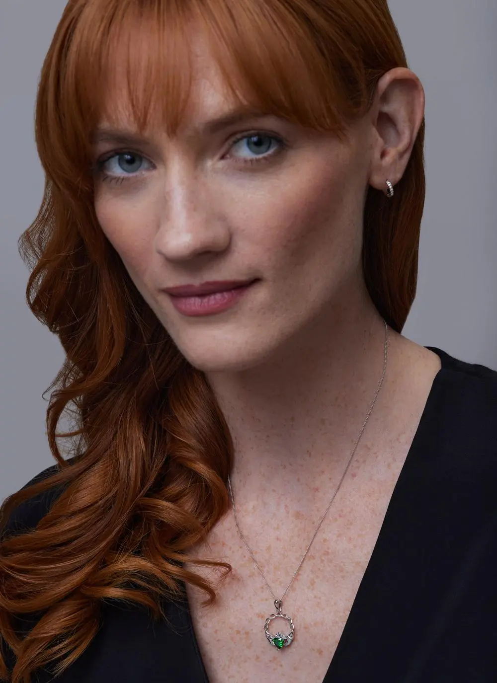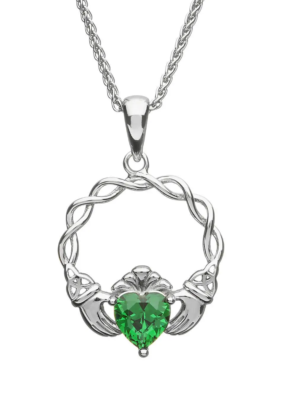 Sterling Silver Green Stone Claddagh Pendant