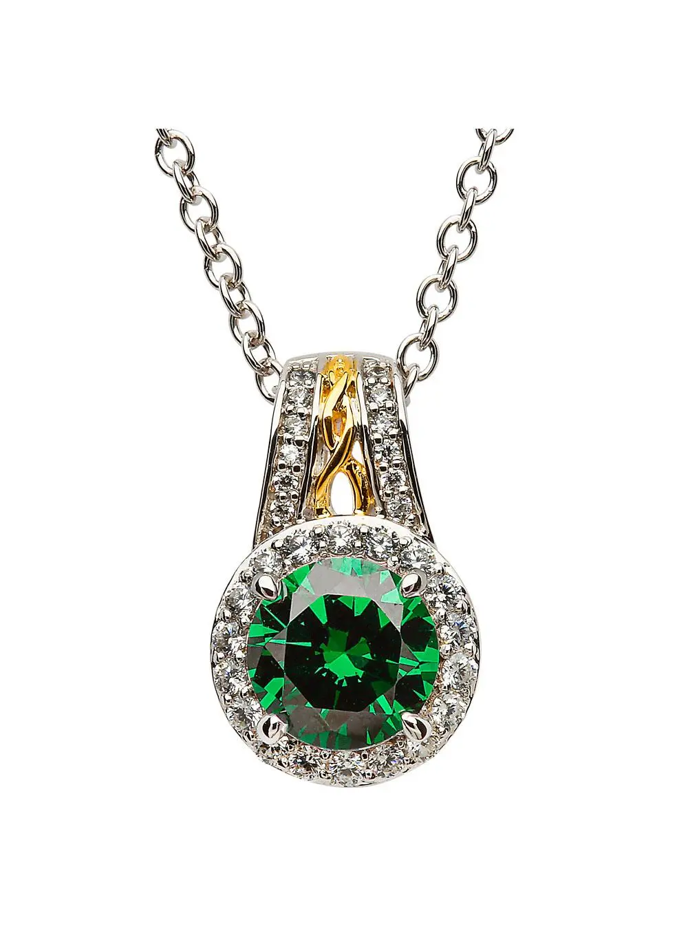 Sterling Silver Celtic Knot Halo Pendant with Green Cubic Zirconia