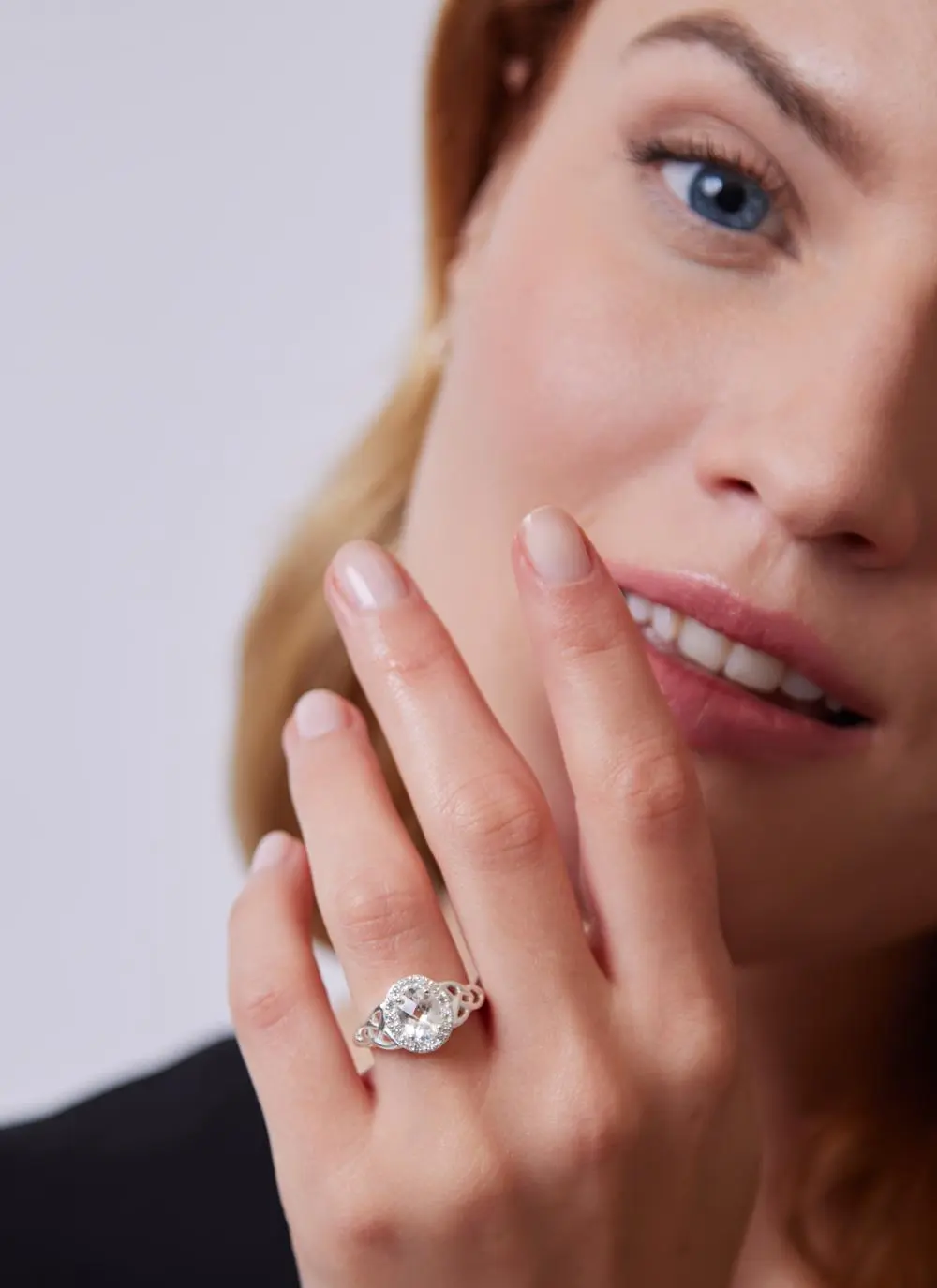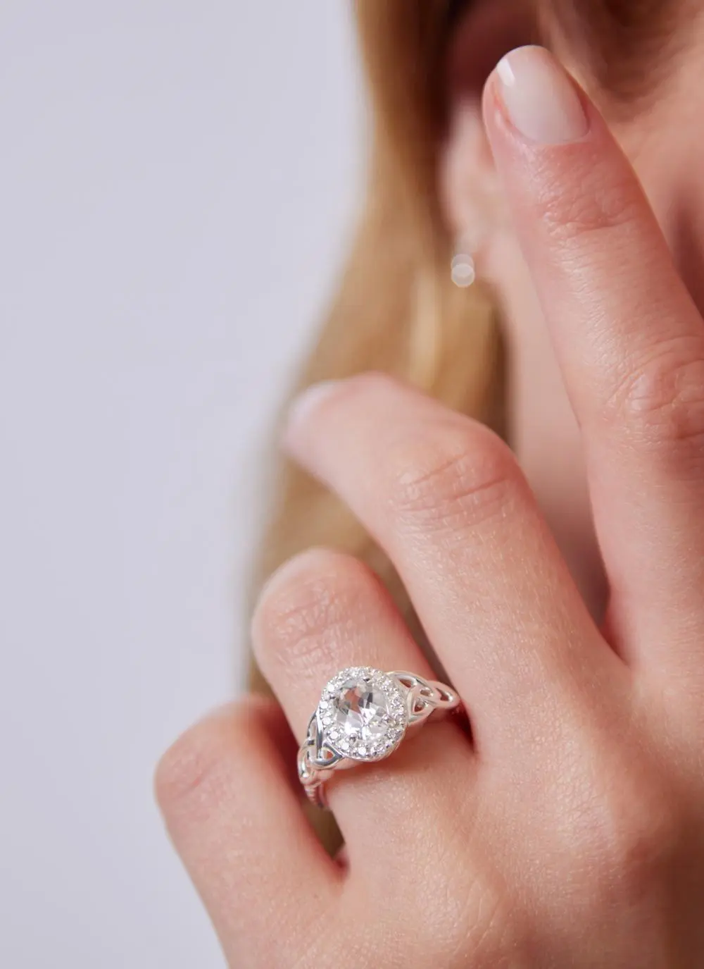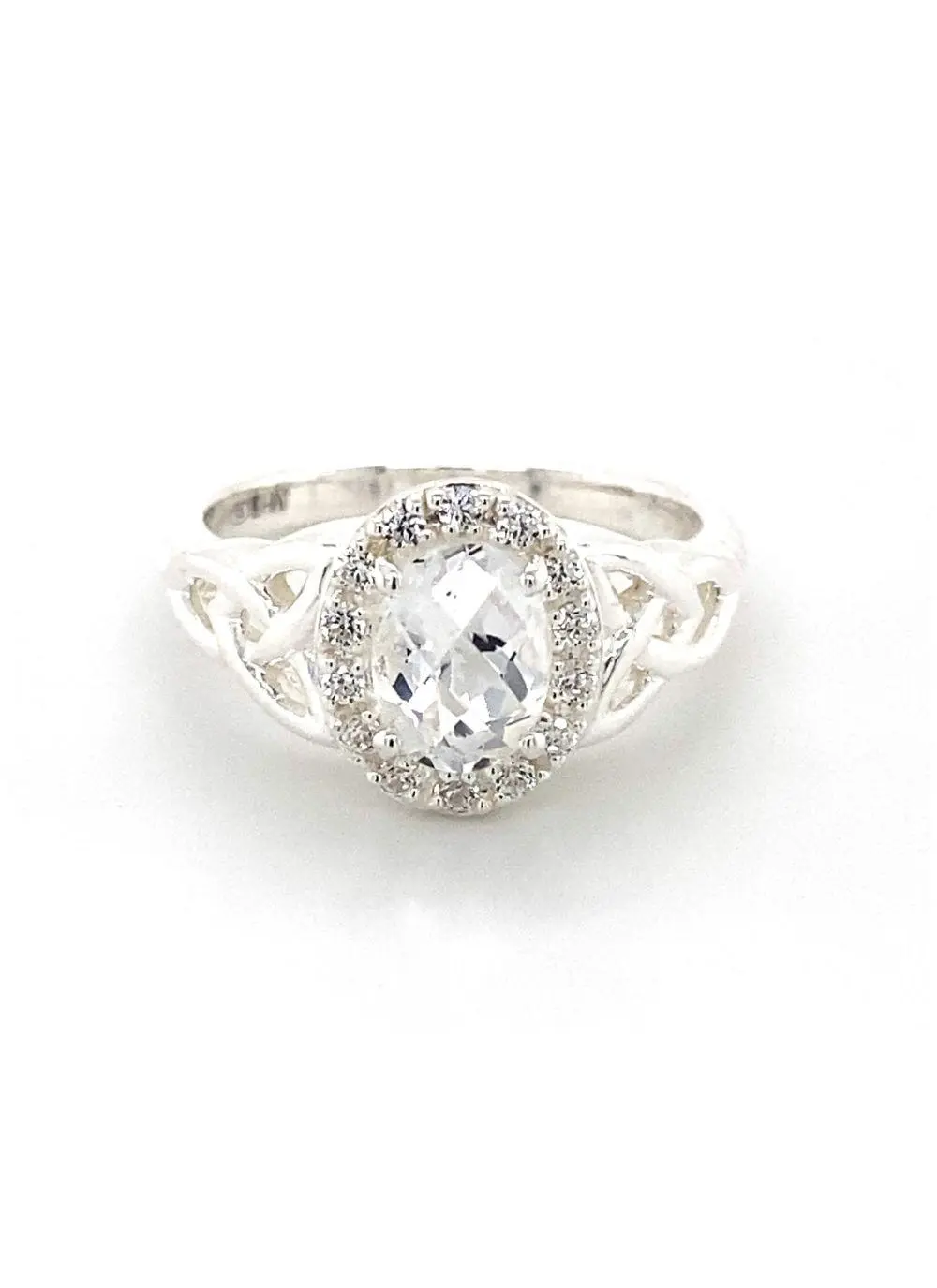 Sterling Silver Trinity Knot Halo Ring with White Topaz