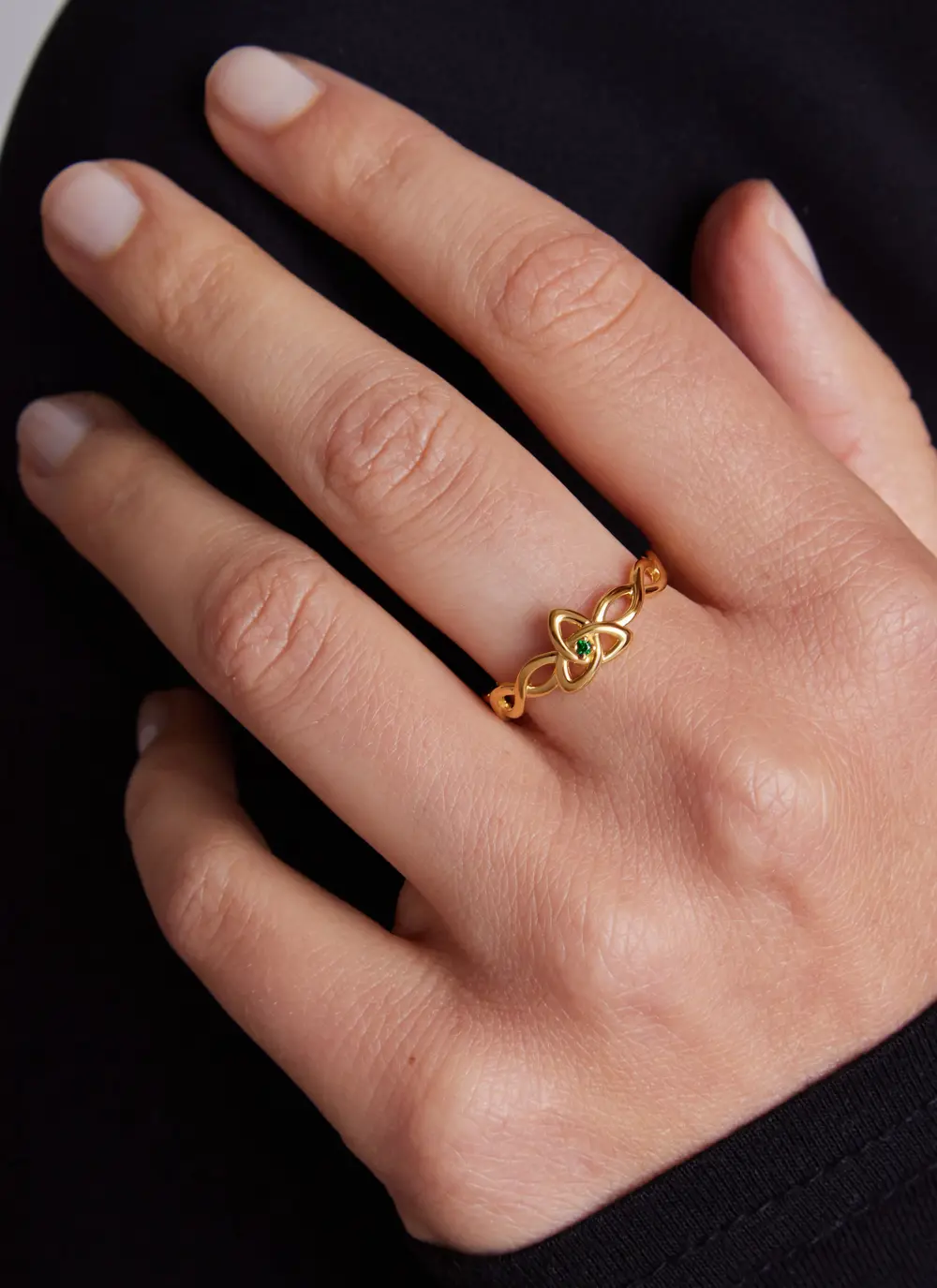 14Ct Gold Vermeil Trinity Knot Ring with Green Cubic Zirconia