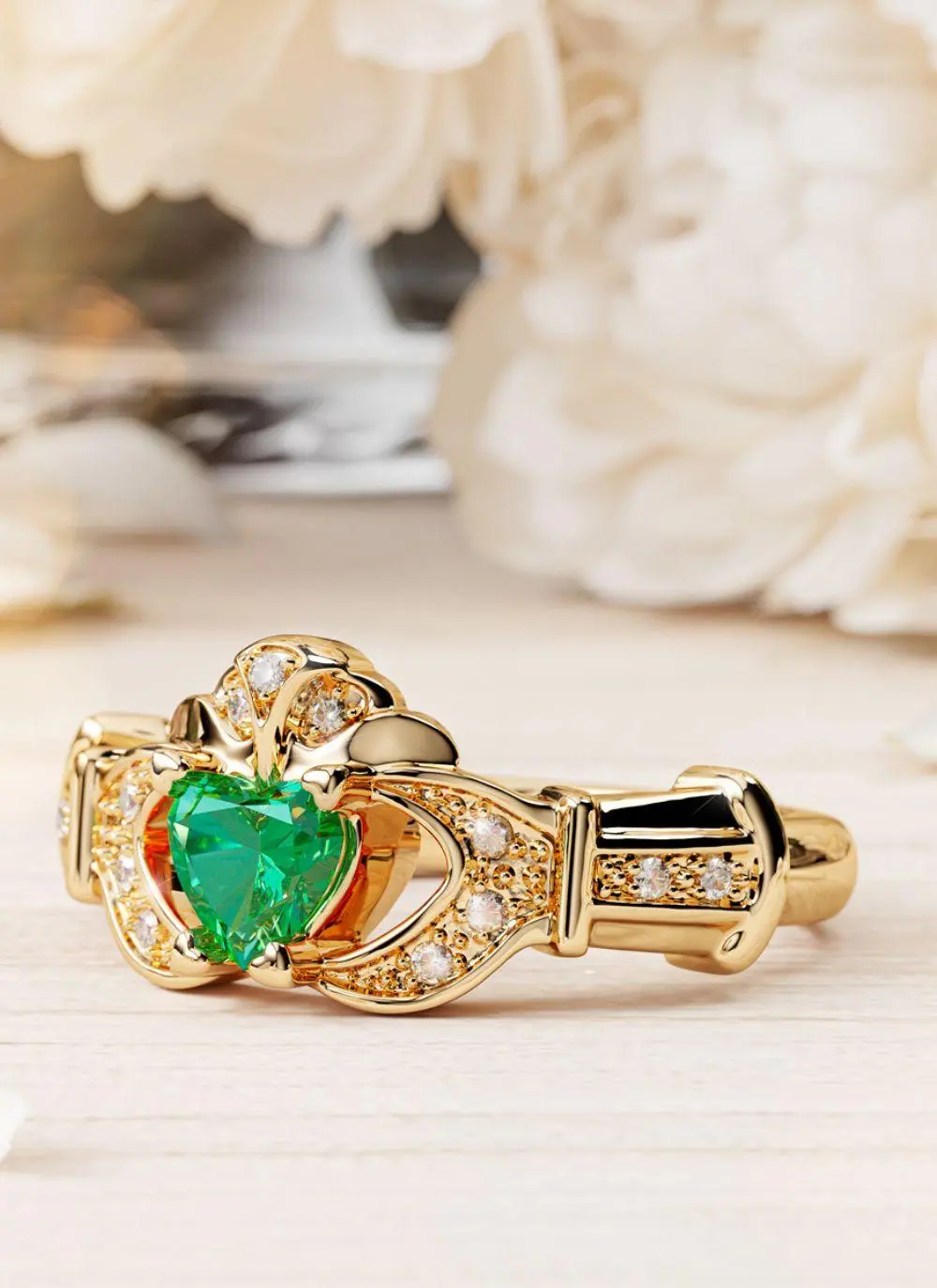 14ct Gold Diamond & Emerald Stackable Claddagh Engagement Ring