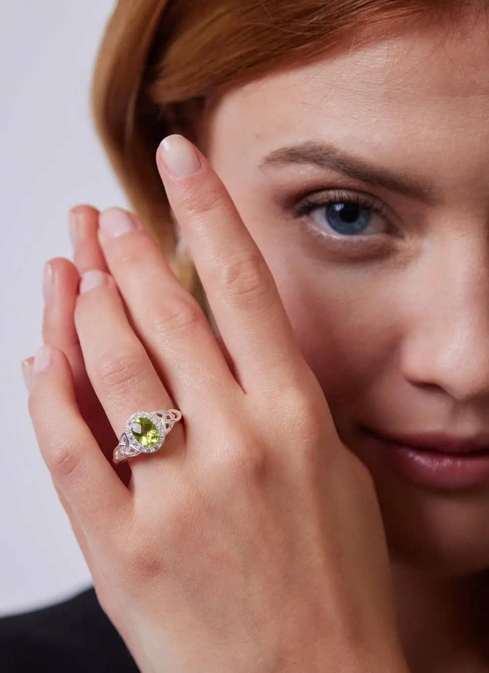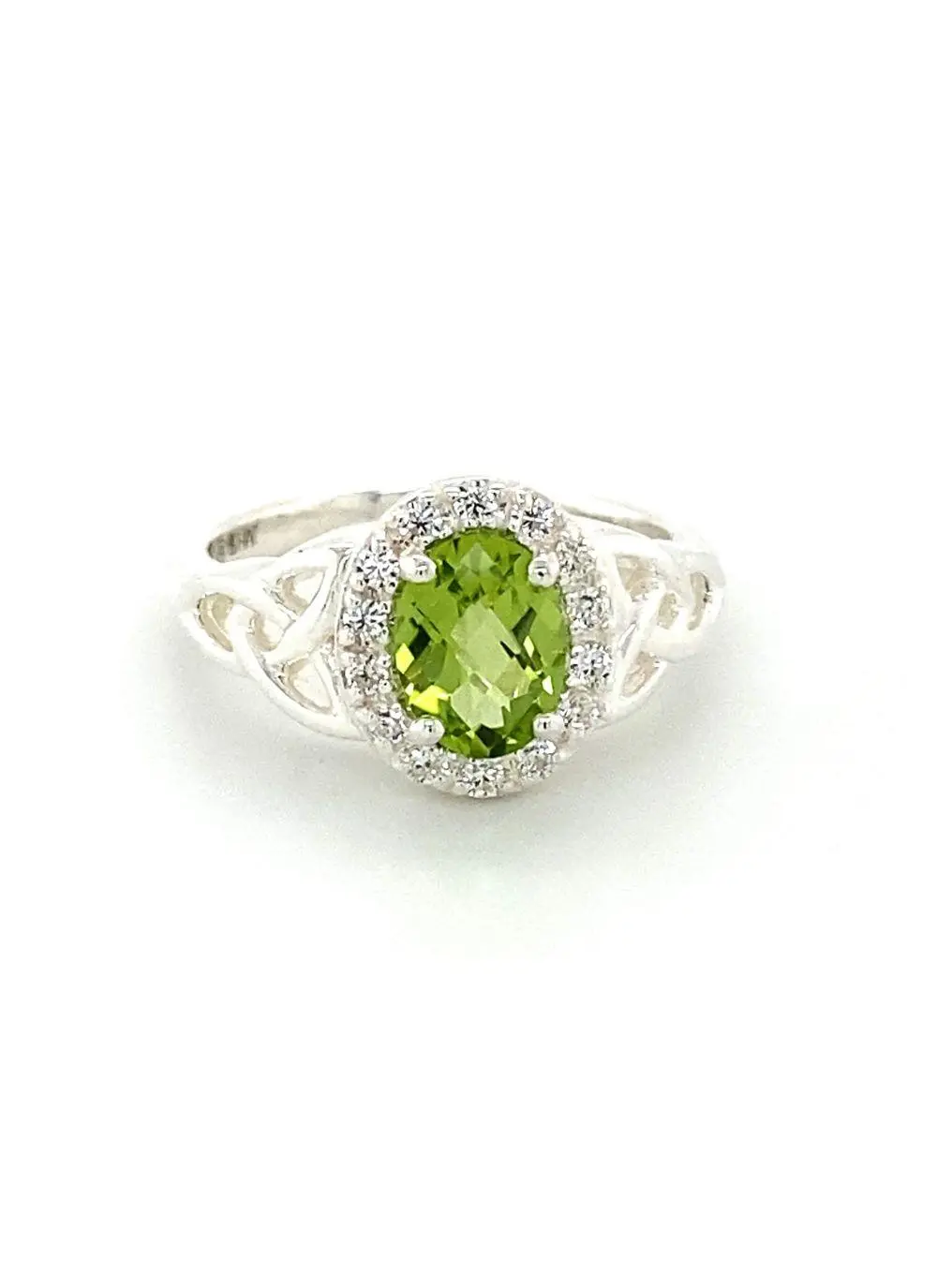 Sterling Silver Trinity Knot Halo Ring with Peridot