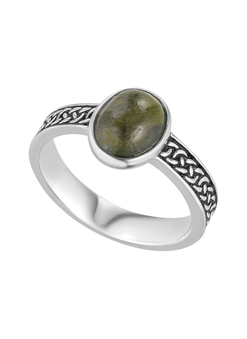 Sterling Silver Oxidized Celtic Ring with Connemara Marble