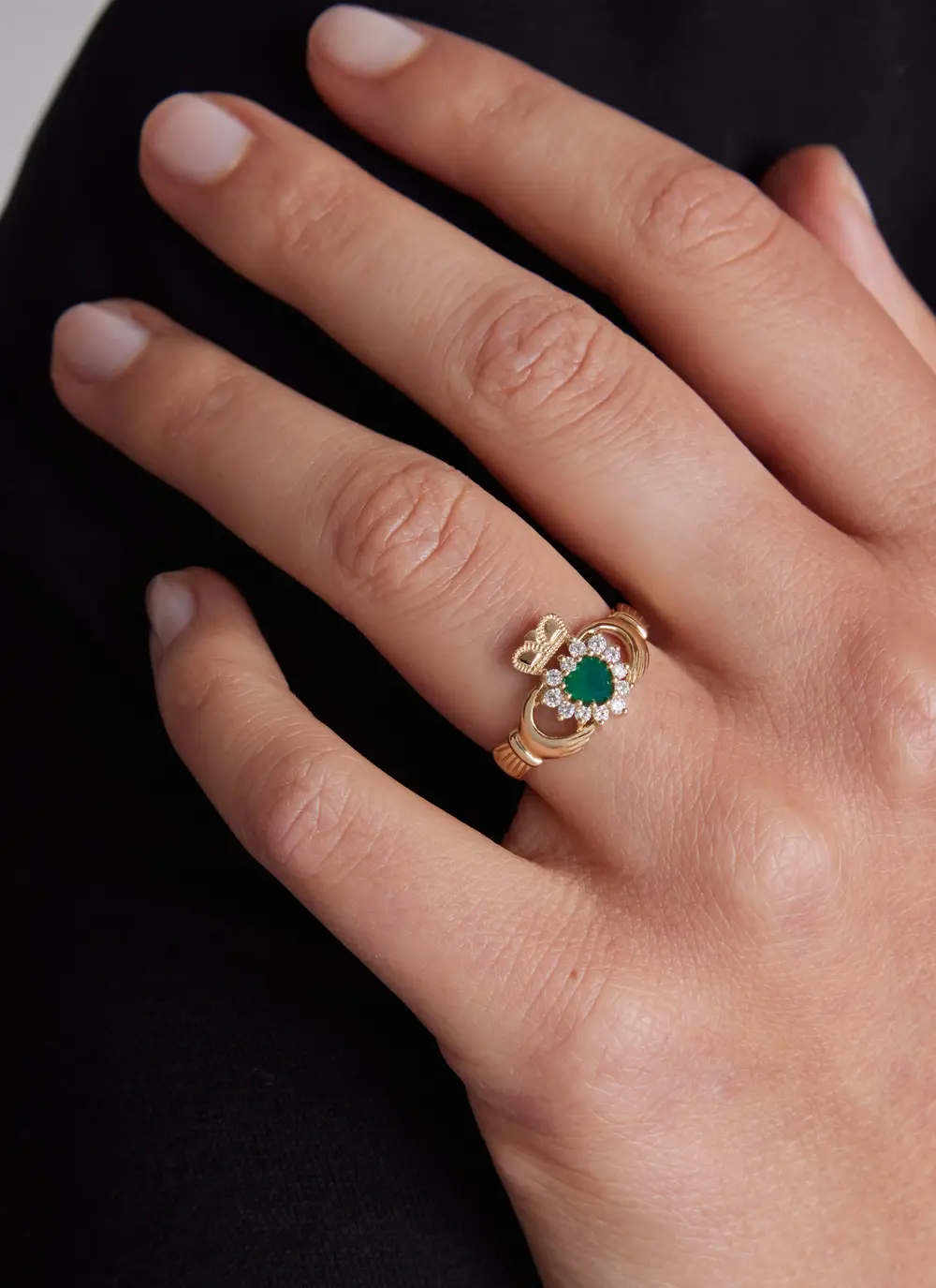 Ladies 14ct Gold Claddagh, Emerald & Diamond Set Ring