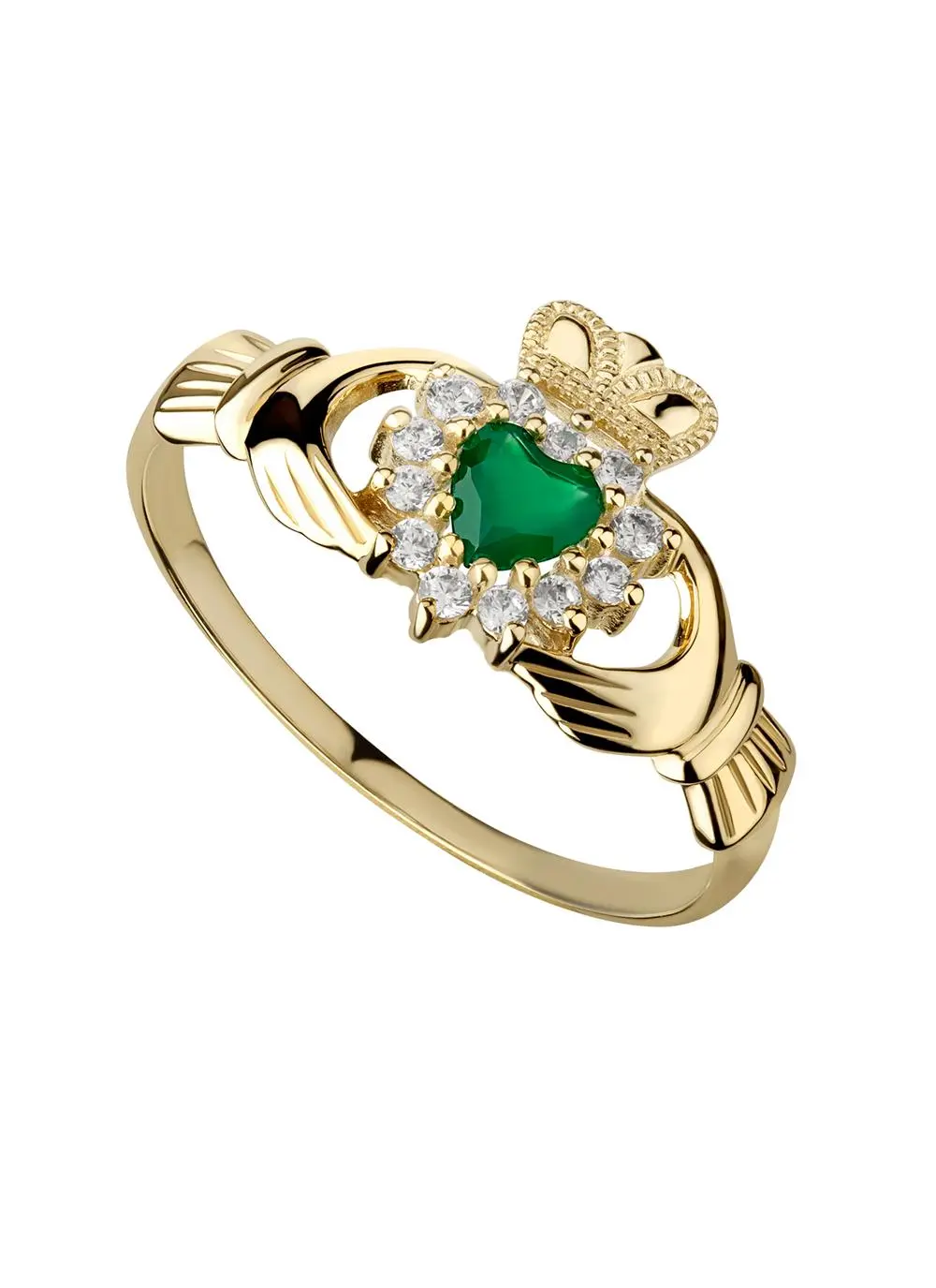 10ct Gold Green Agate Claddagh Ring