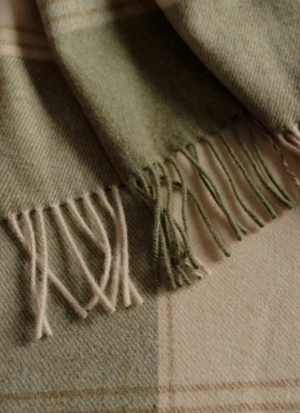 Green & Camel Lambswool Throw