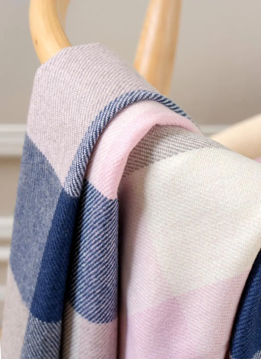 Pink & Navy Check Supersoft Lambswool Throw
