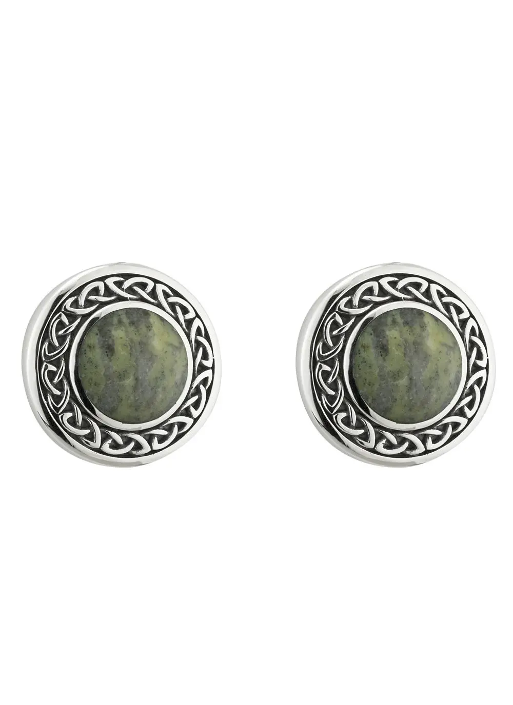 Sterling Silver Connemara Marble Celtic Round Stud Earrings