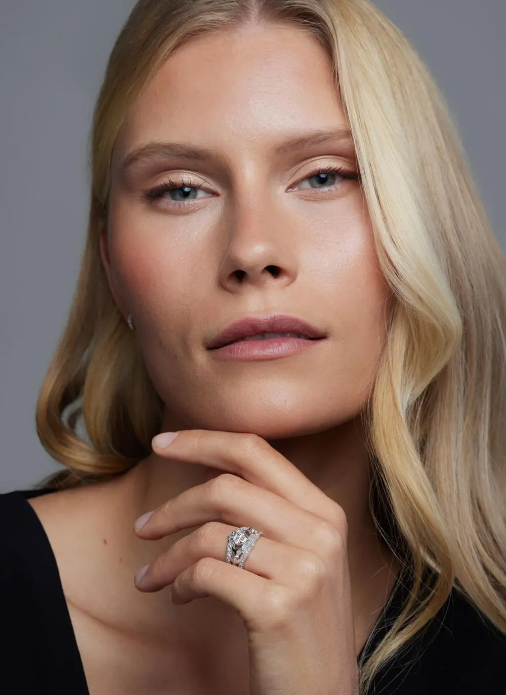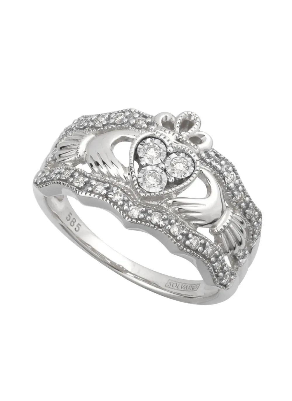 14ct White Gold Diamond Triple Claddagh Ring