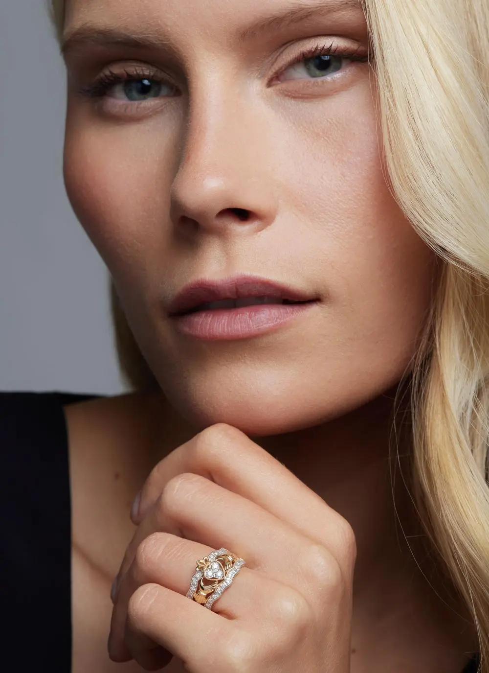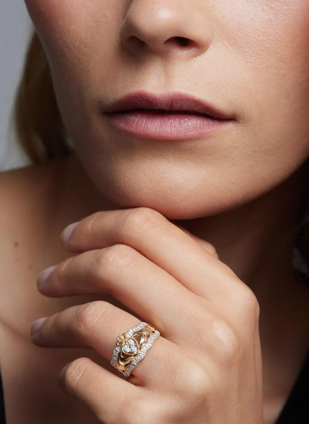 14ct Gold Diamond Triple Claddagh Ring