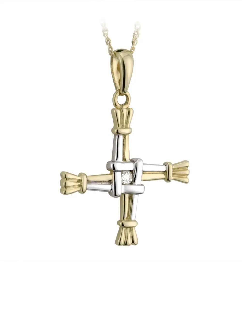 14ct Two Tone Diamond Set St. Brigid's Cross Pendant