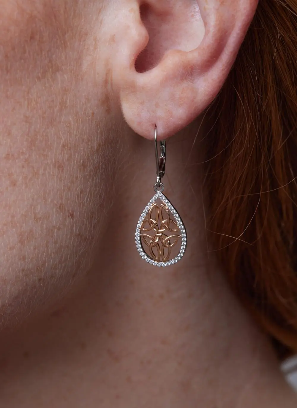 Sterling Silver & Rose Gold Plated Trinity Shamrock Earrings