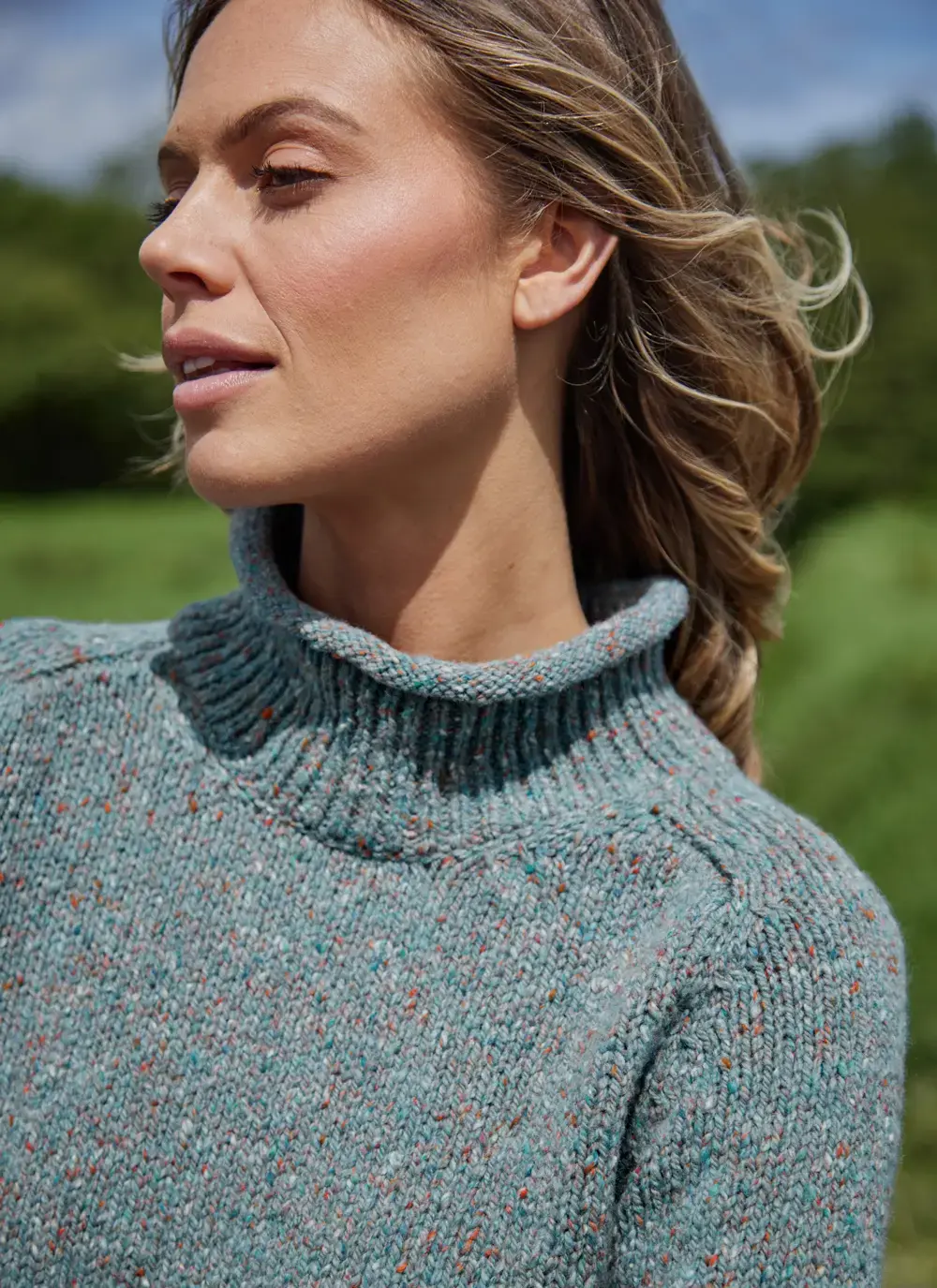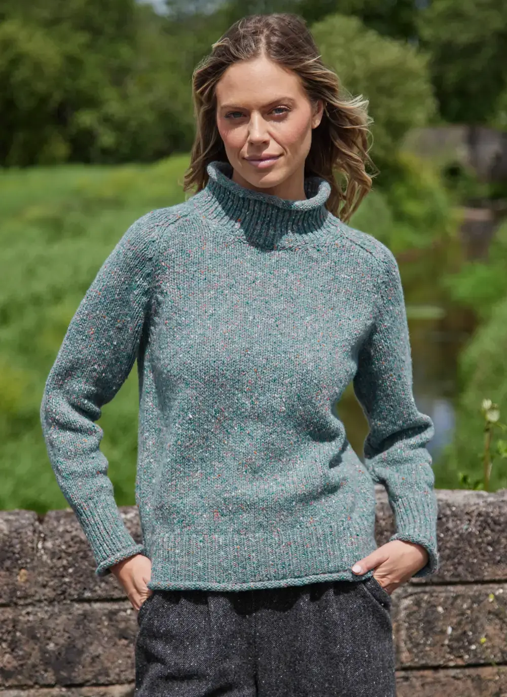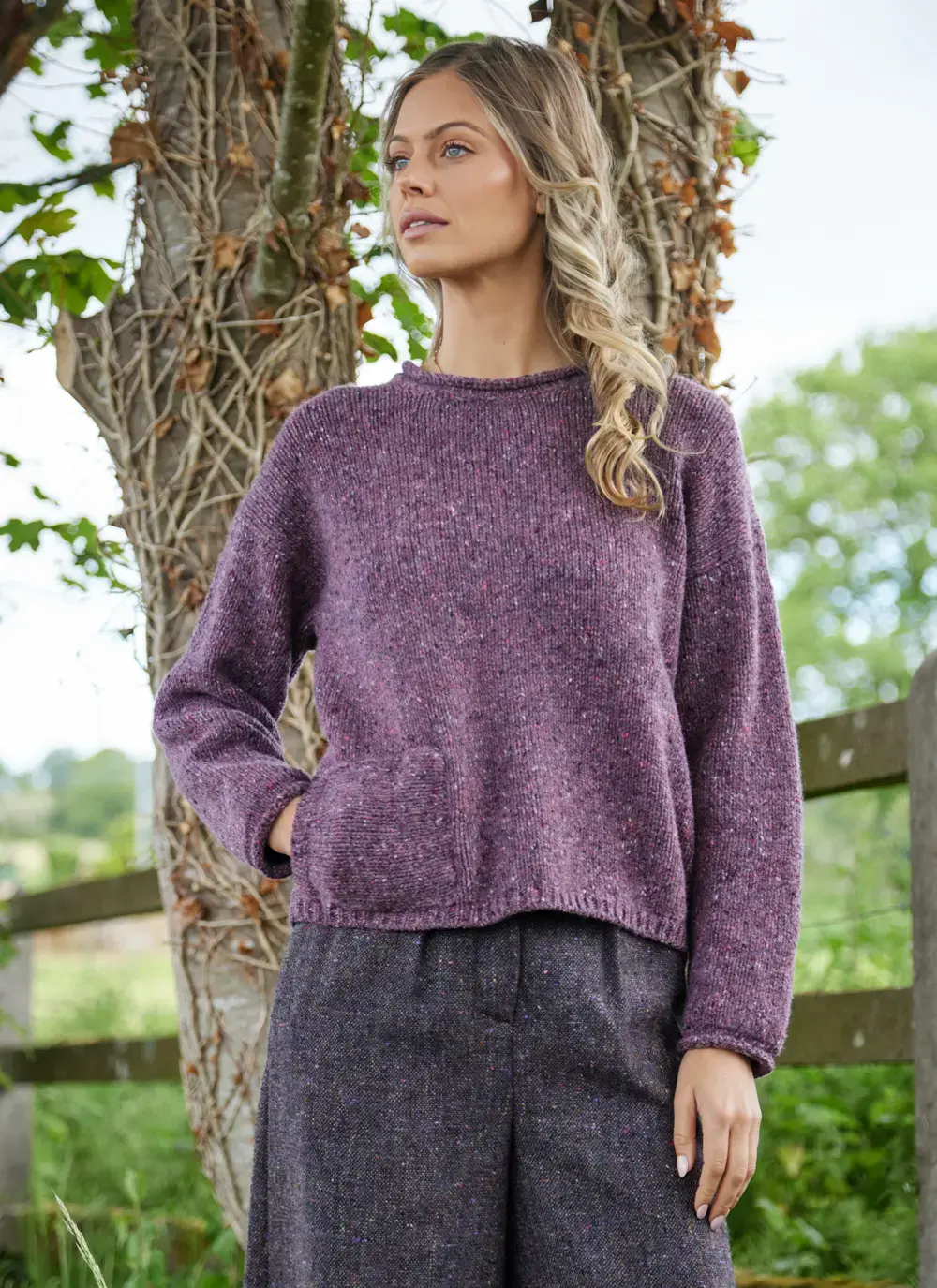 Fisherman Donegal Fleck Roll Neck Pocket Sweater