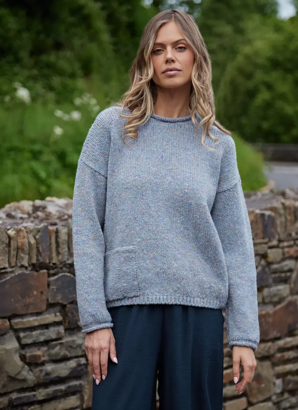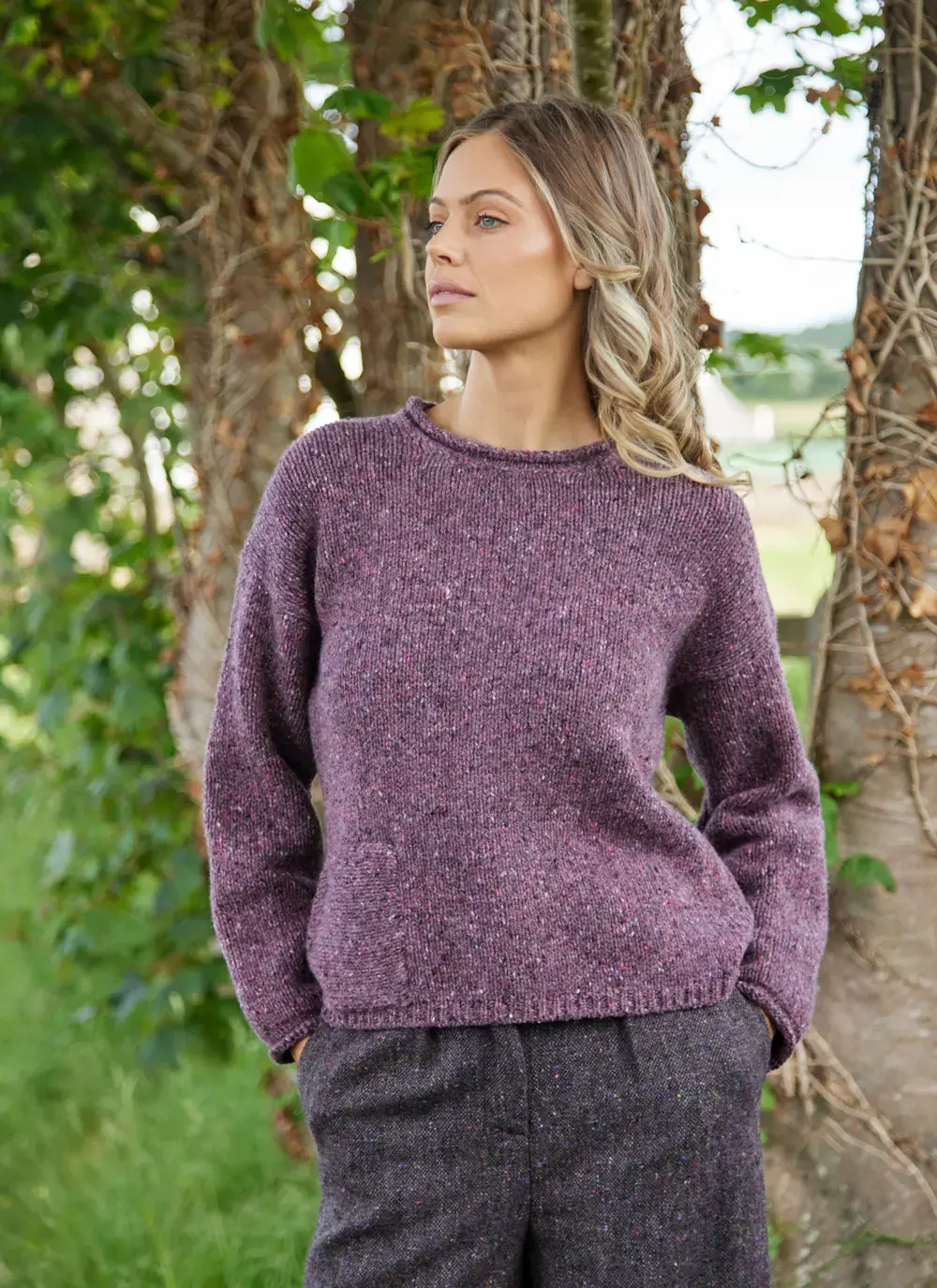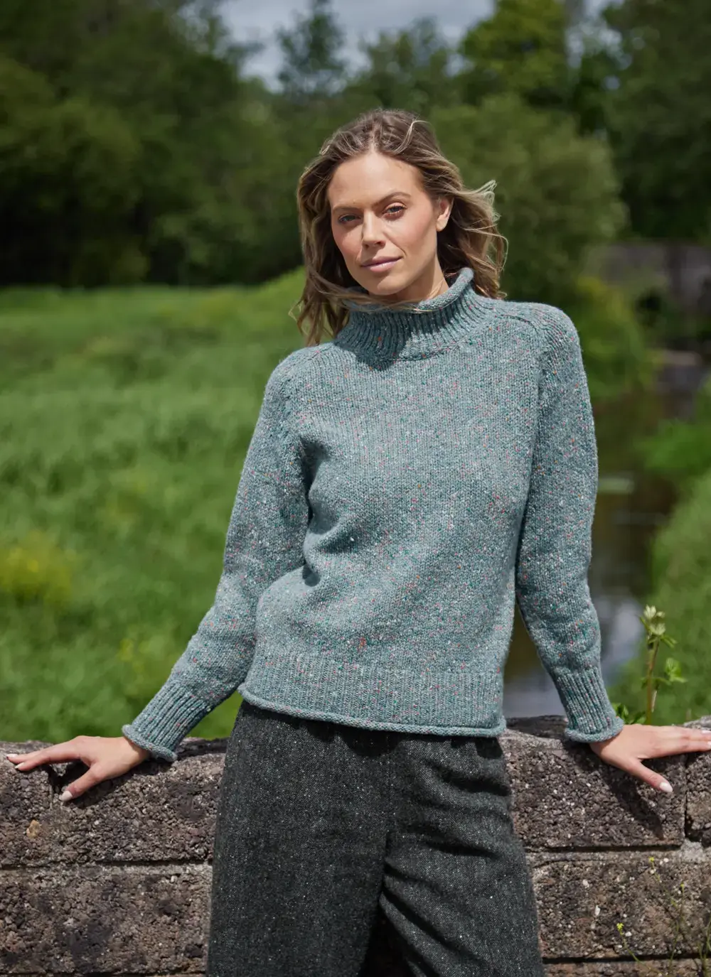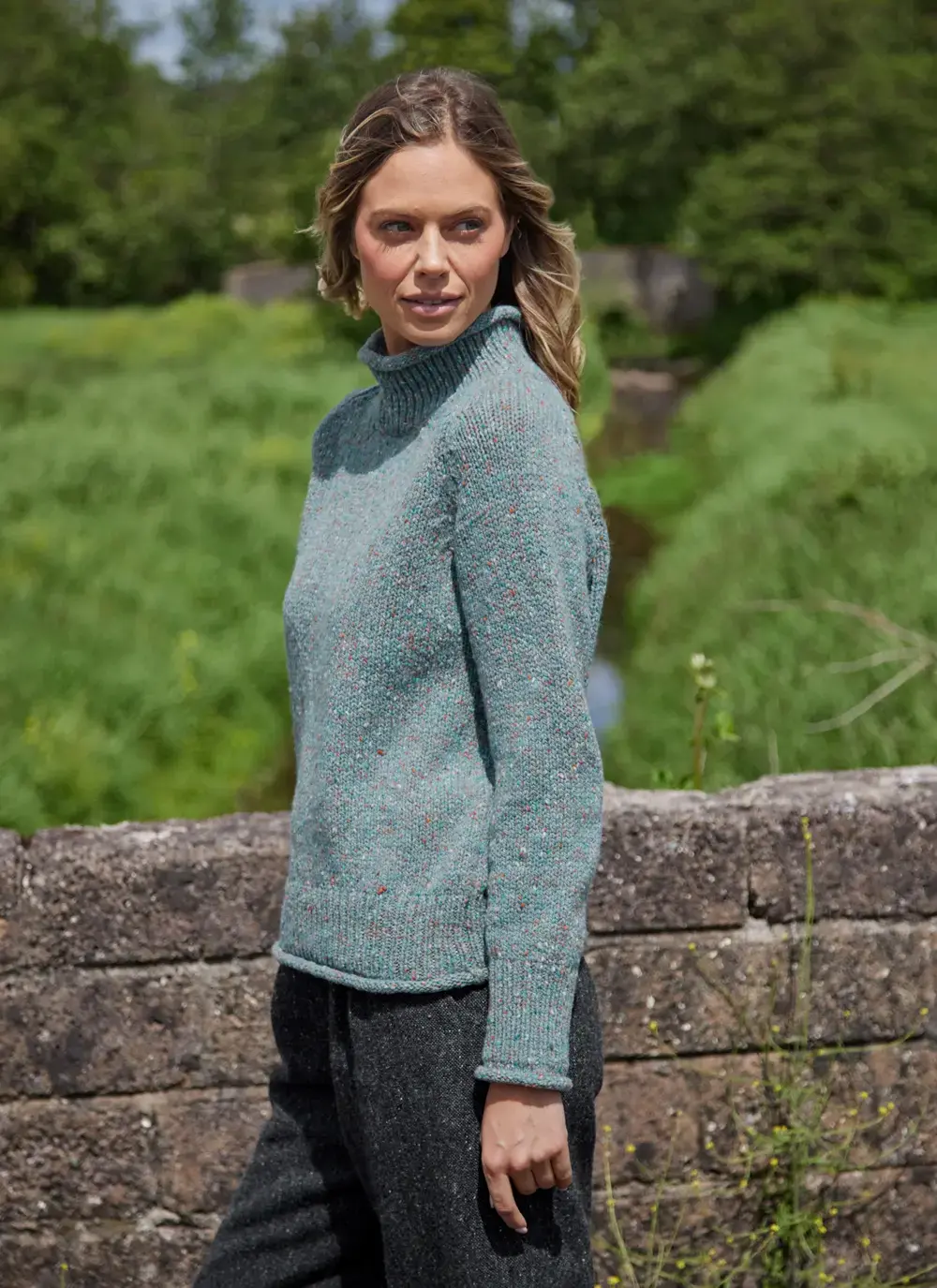Fisherman Donegal Fleck Roll Neck Pocket Sweater