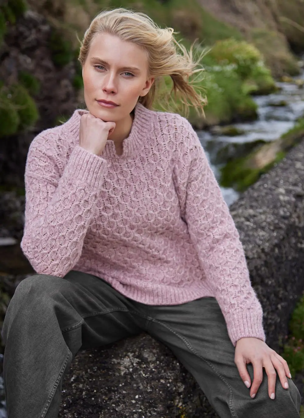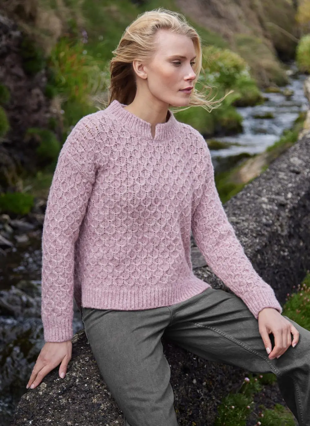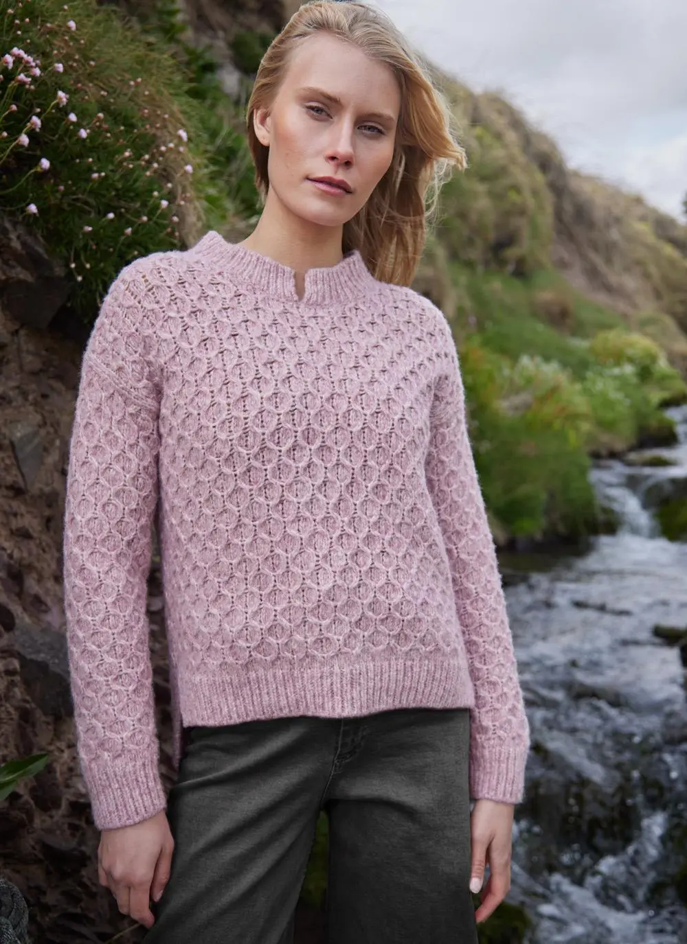 Fisherman Alpaca Honeycomb Stitch Sweater