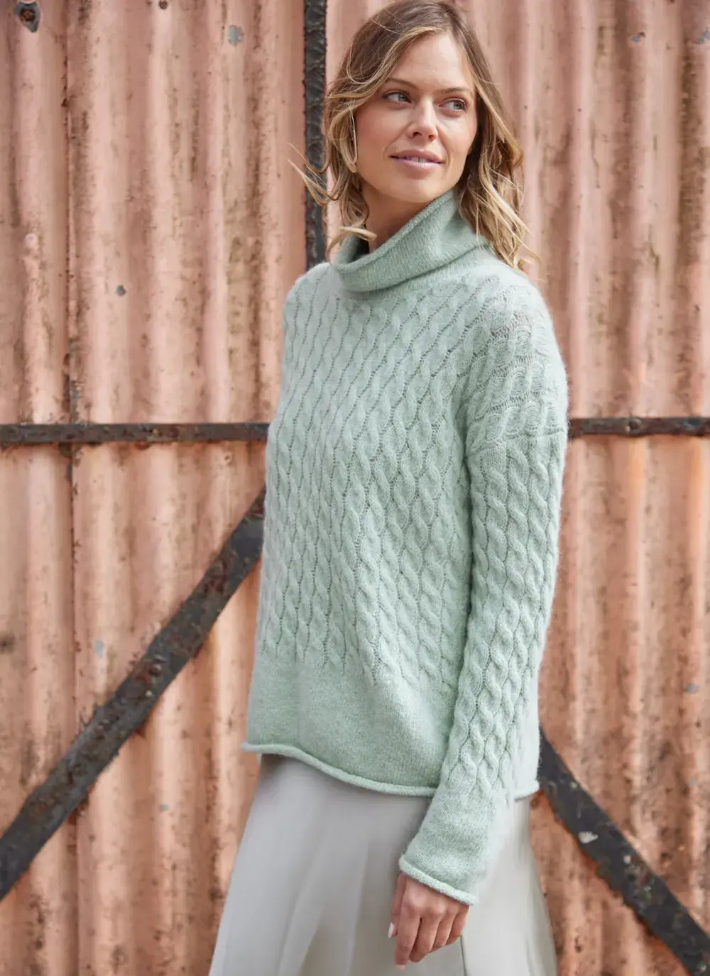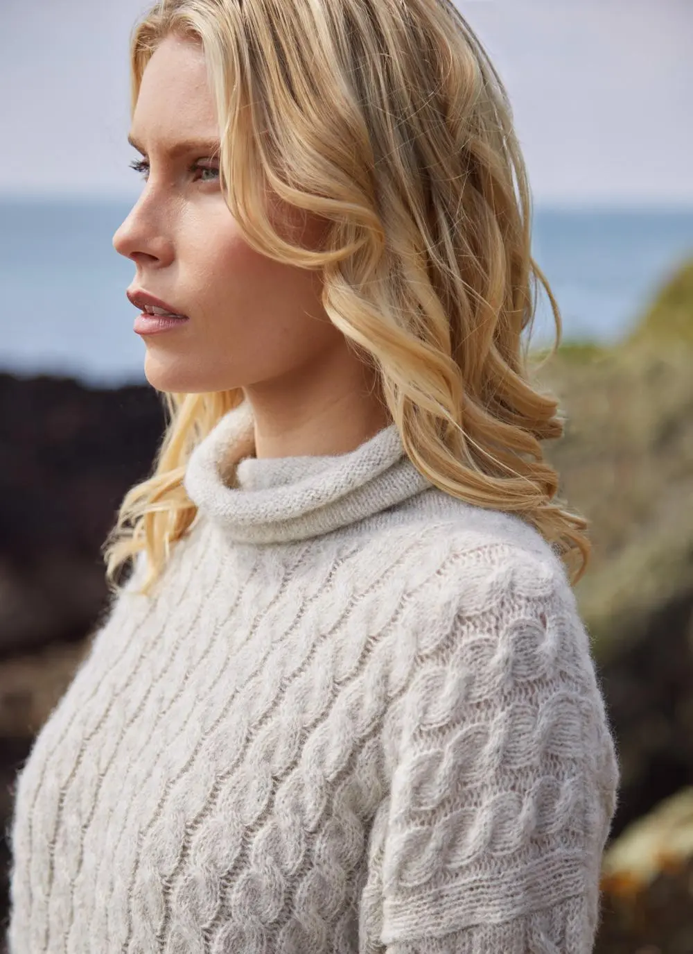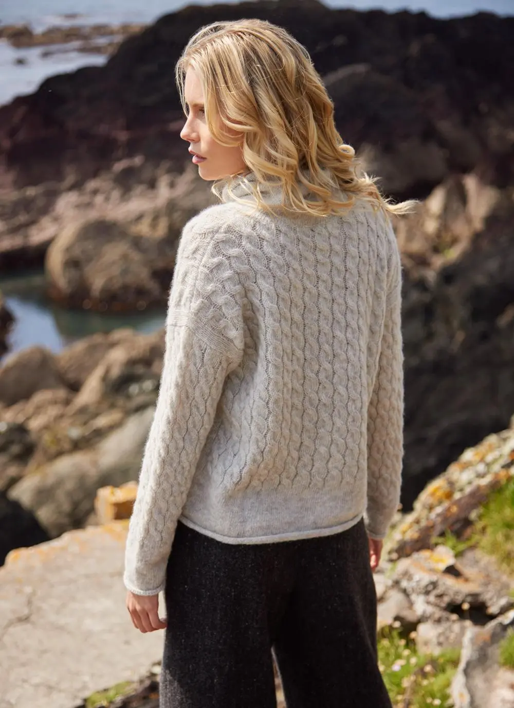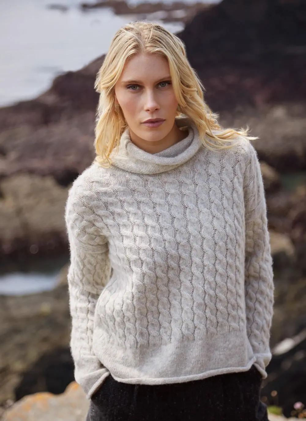 Fisherman Alpaca Cabled Funnel Neck Sweater