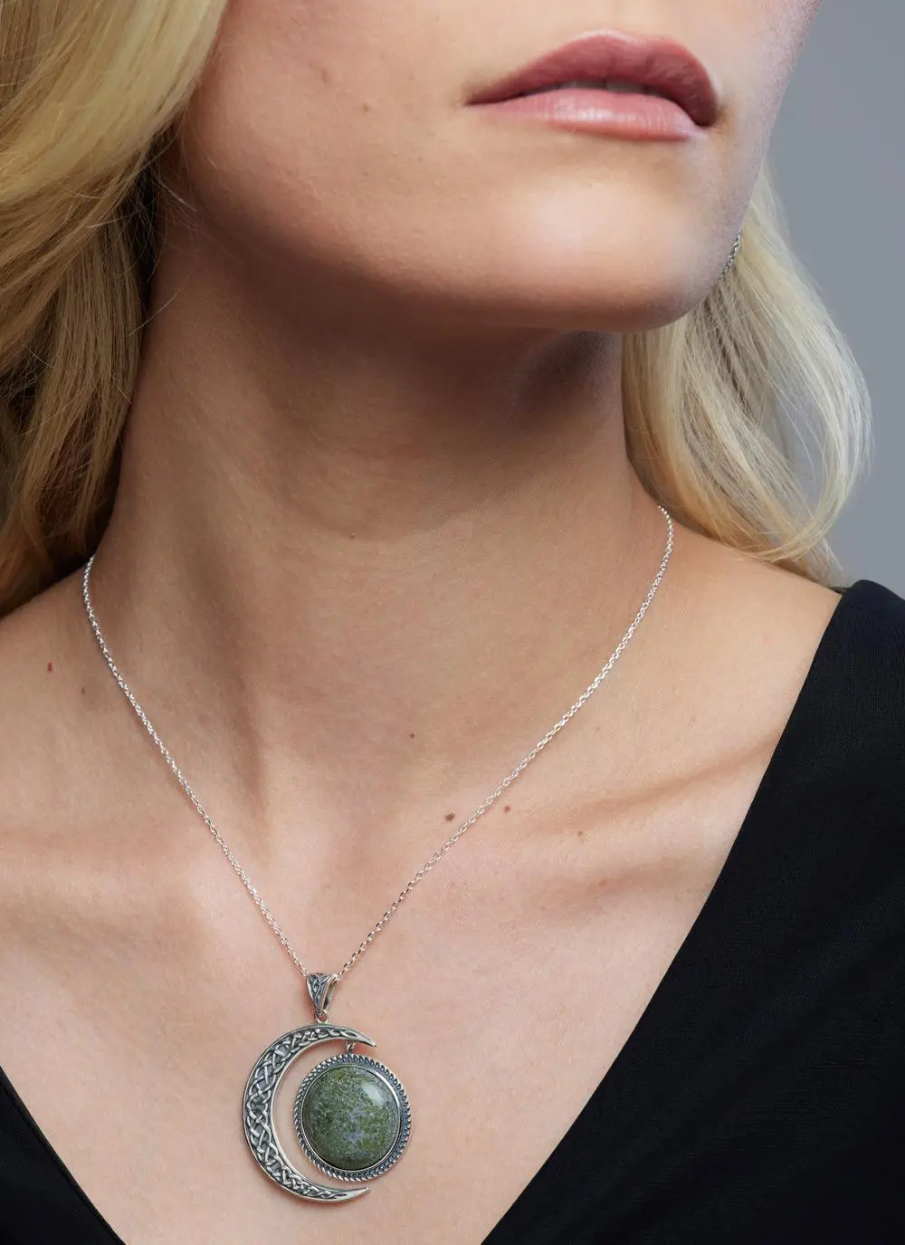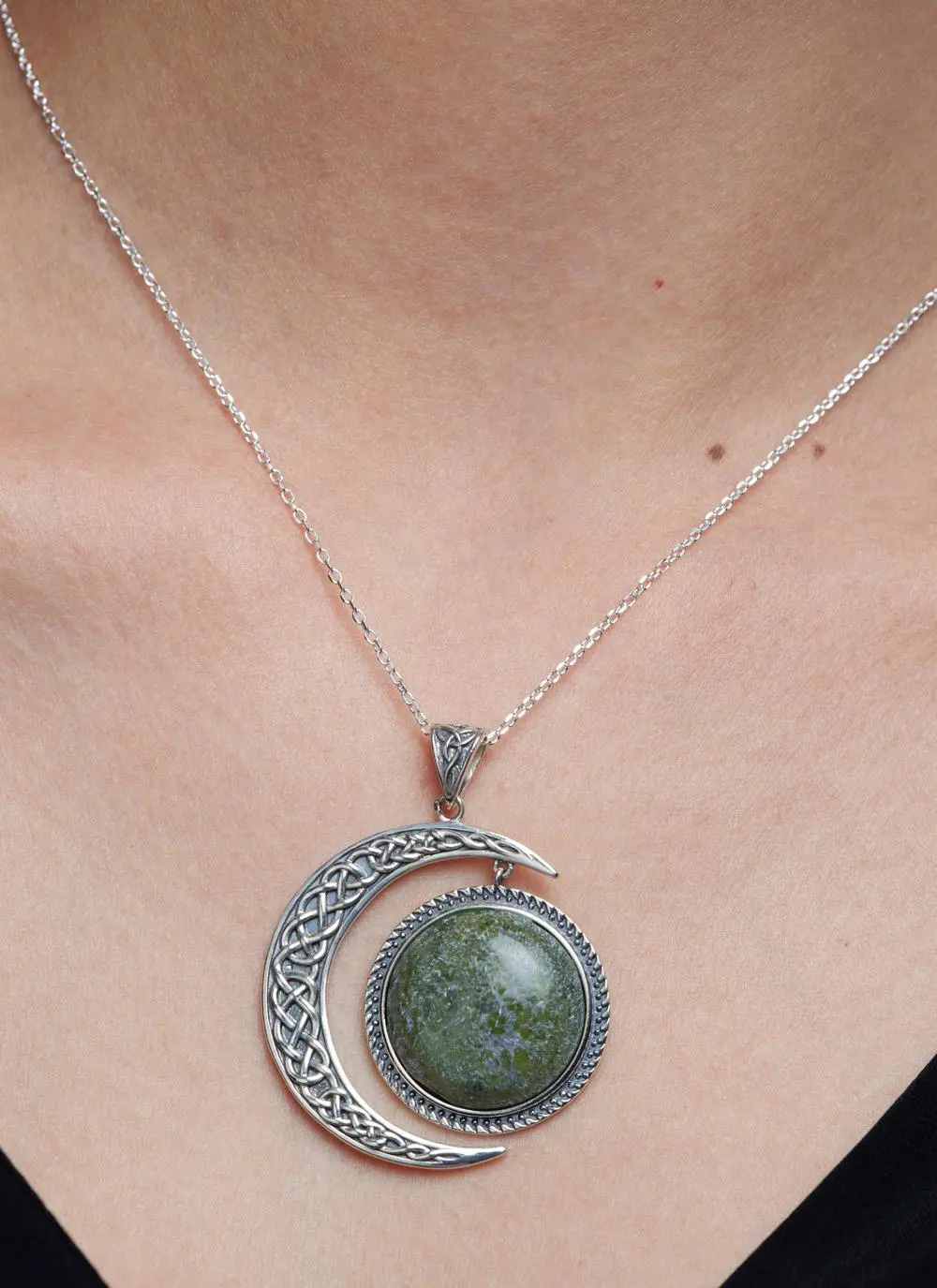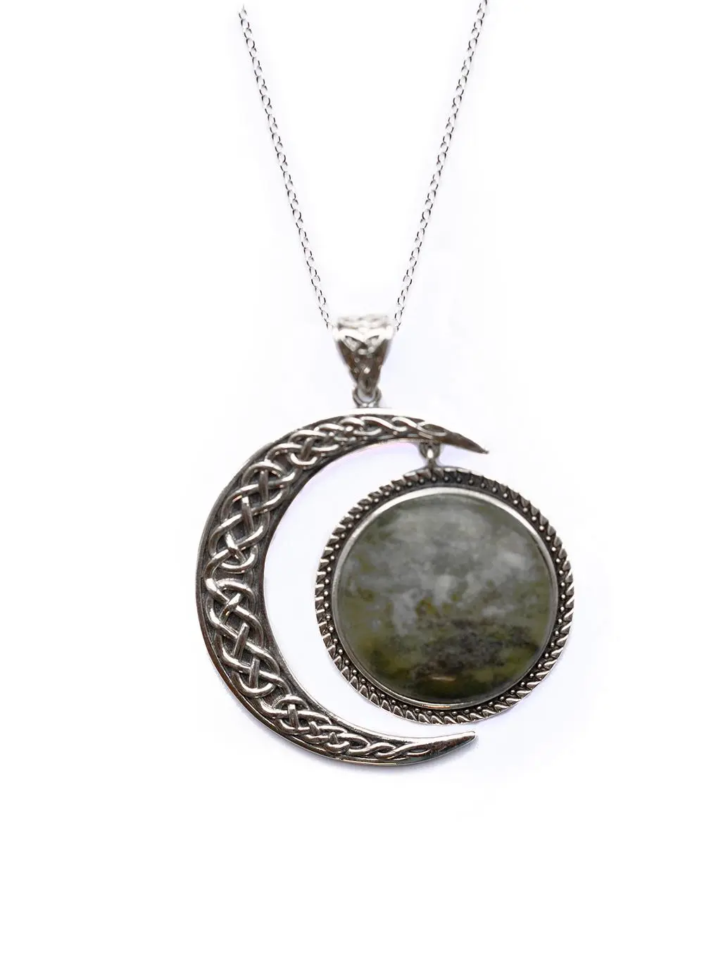 Sterling Silver Connemara Marble Crescent Moon Pendant