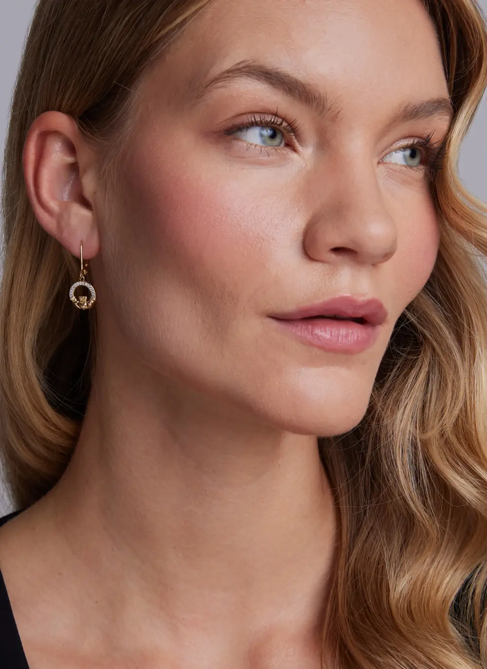 14ct Gold Vermeil Claddagh Drop Earrings with Cubic Zirconia