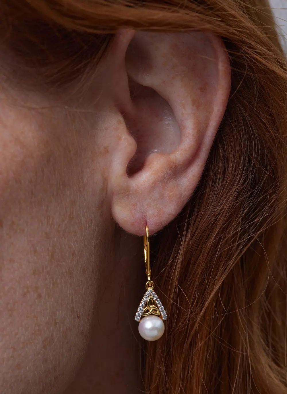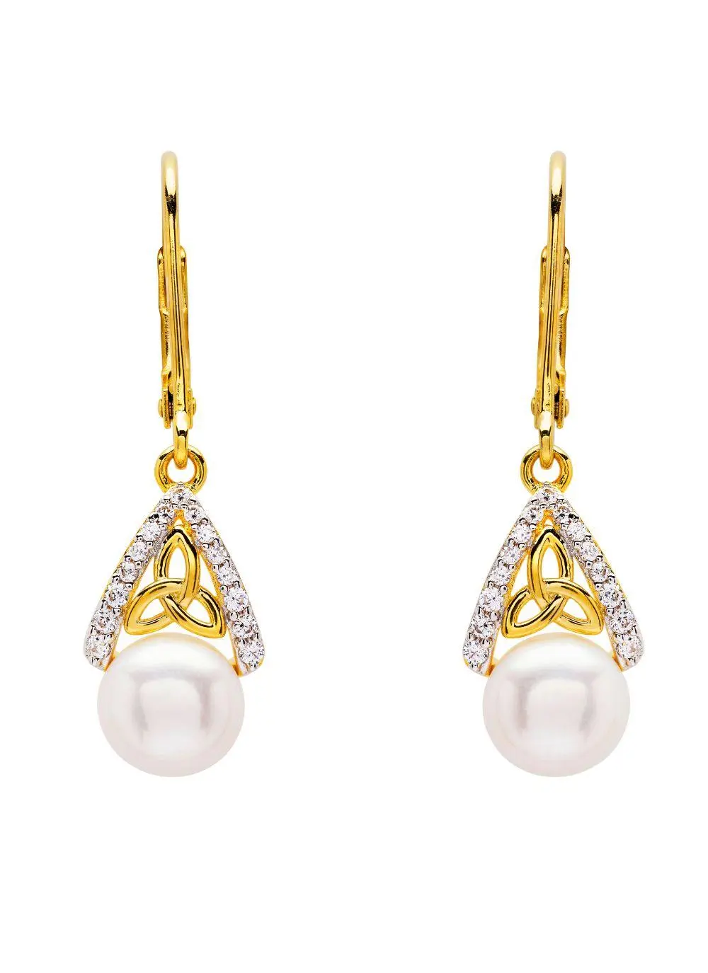 14Ct Gold Vermeil Pearl Celtic Trinity Knot Drop Earrings