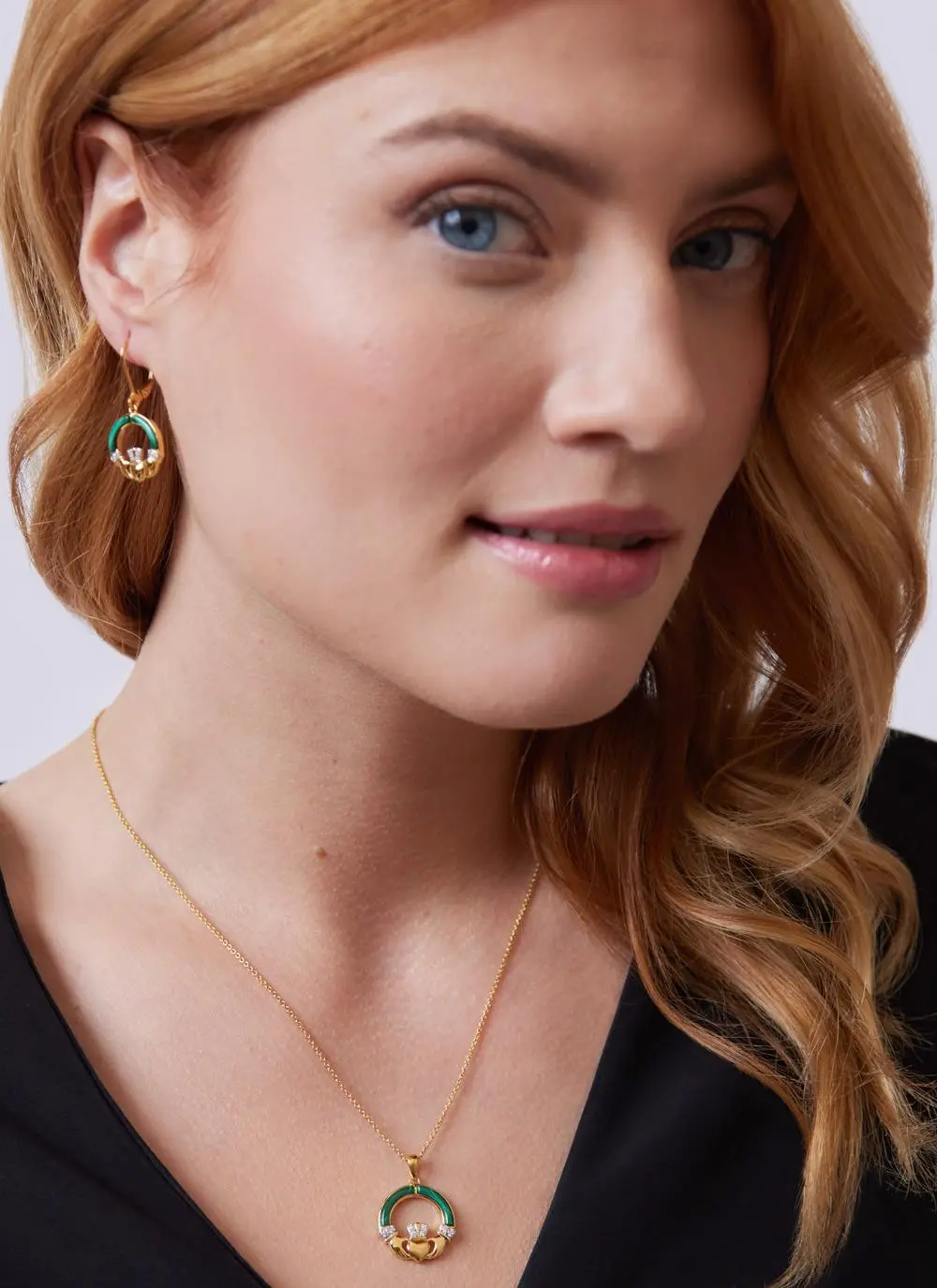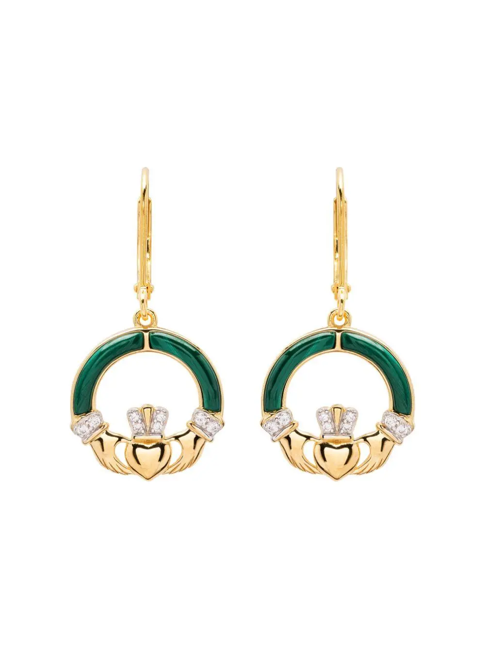14ct Gold Vermeil Claddagh Earrings with Malachite & Cubic Zirconia