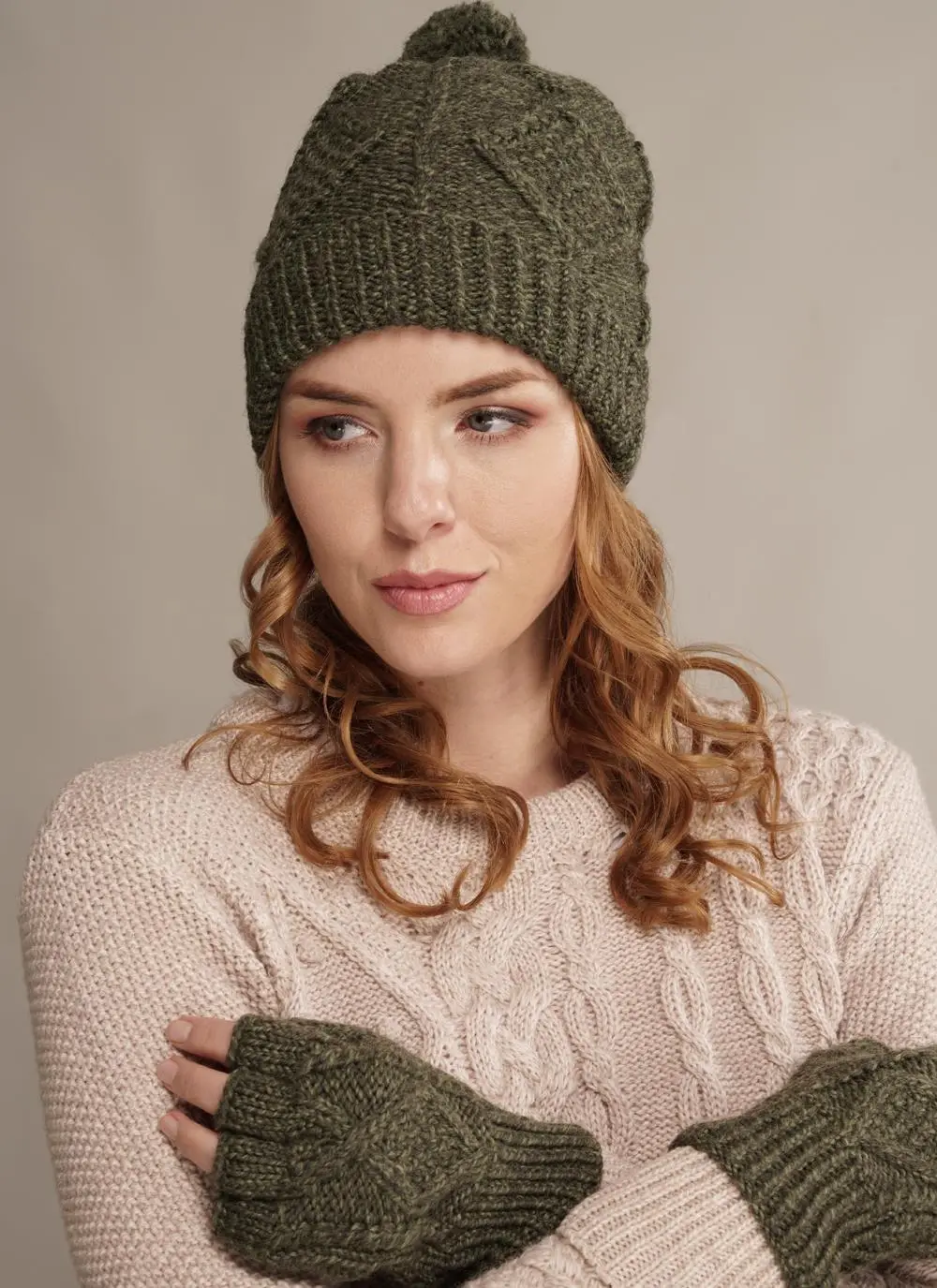 Unisex Hand-Knit Aran Pom Pom Beanie