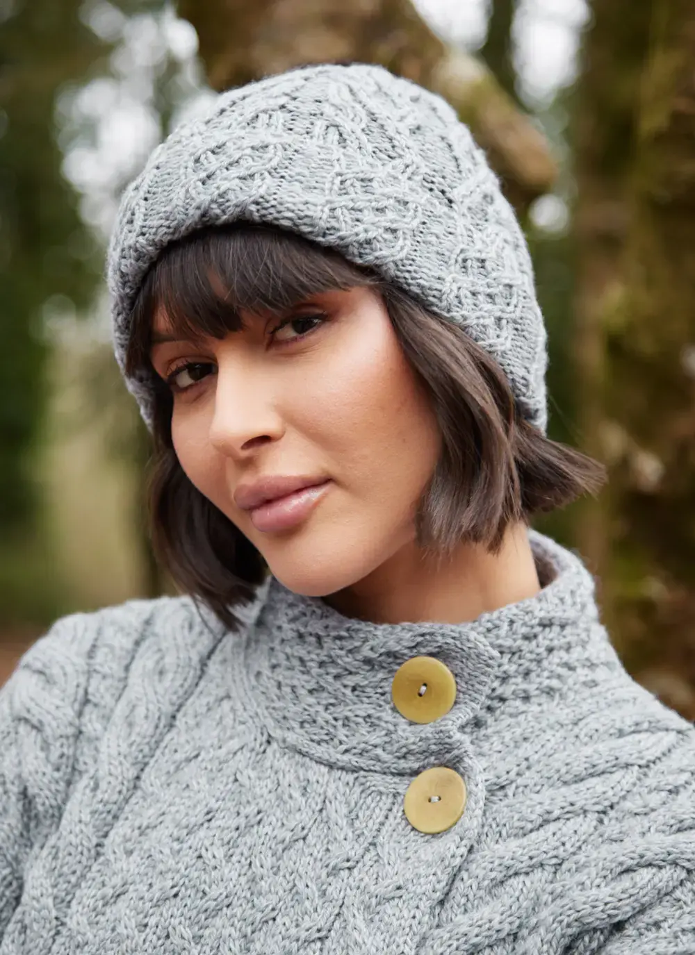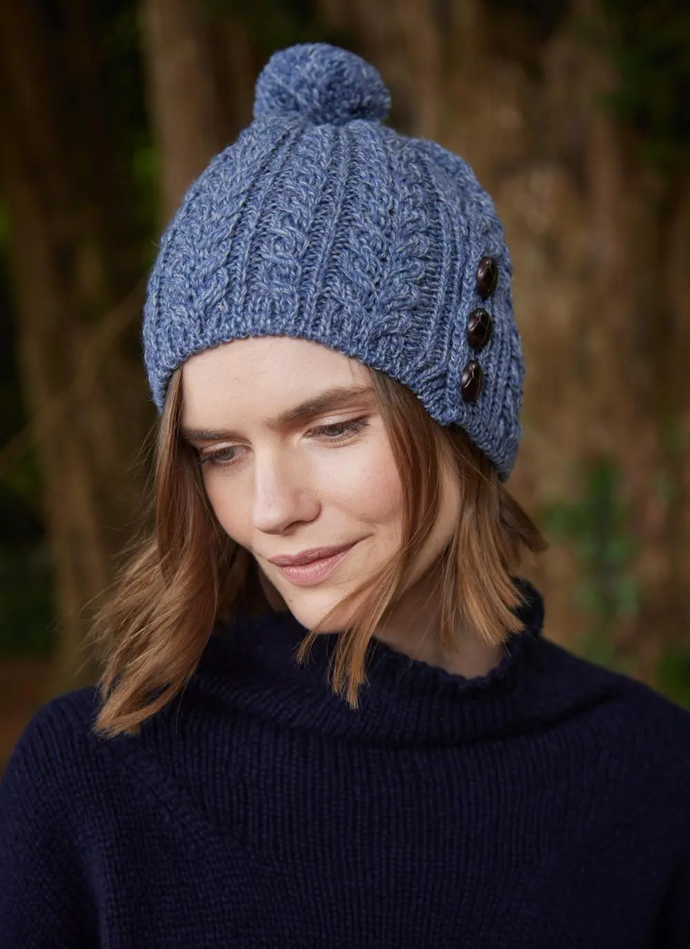Merino Aran Button Pom Pom Hat