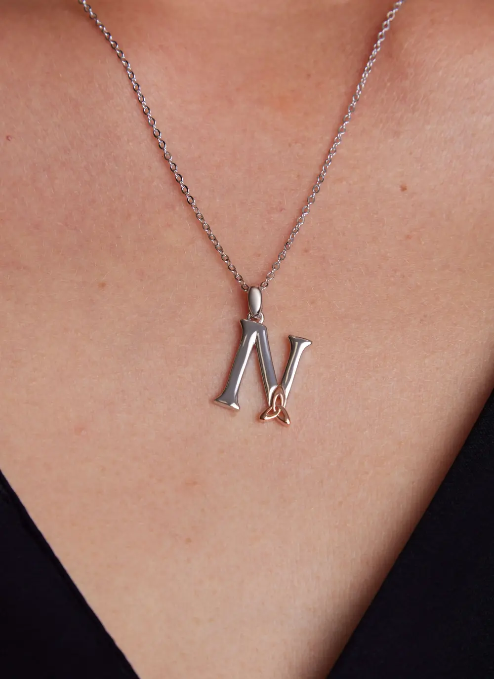 Sterling Silver Trinity Knot Initial Pendant - Q