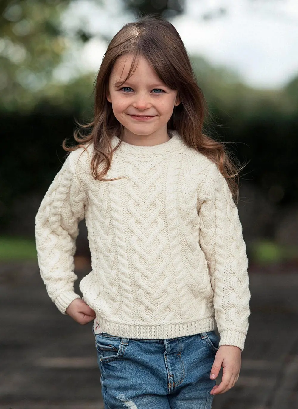 Girls Aran Crew Neck Sweater