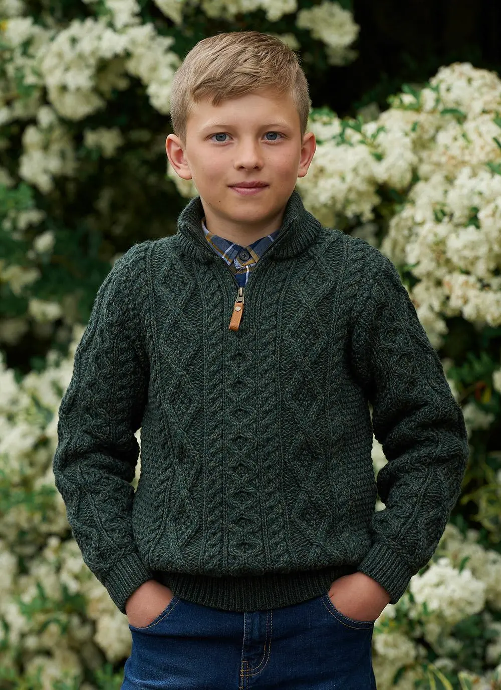 Boys Half Zip Aran Sweater