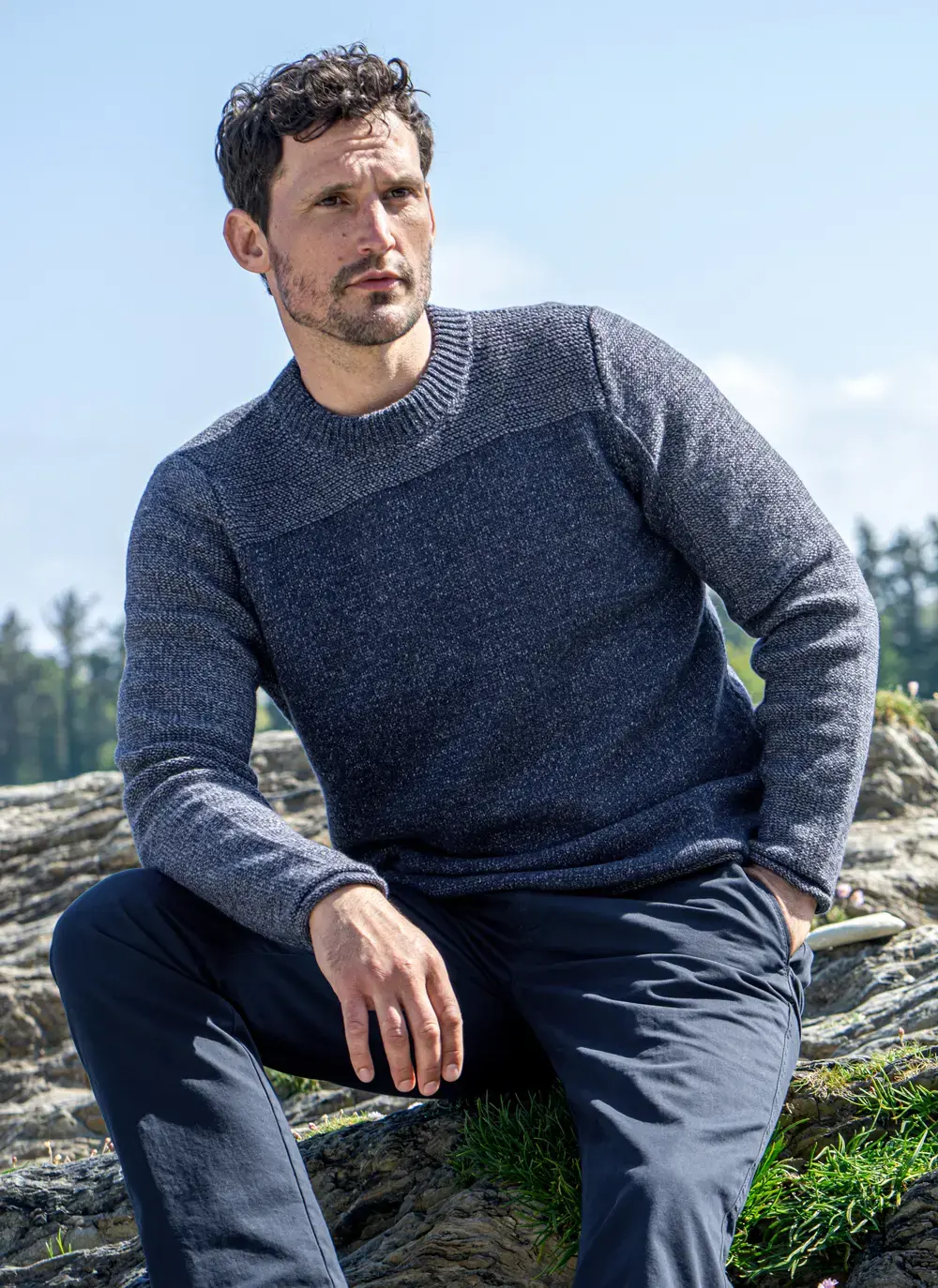Fisherman Merino Links Stitch Crew Neck Sweater