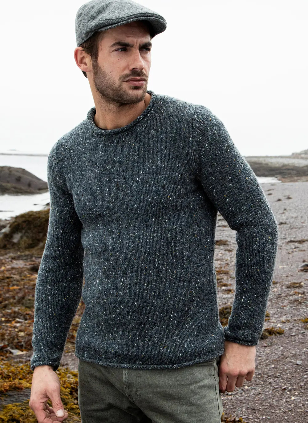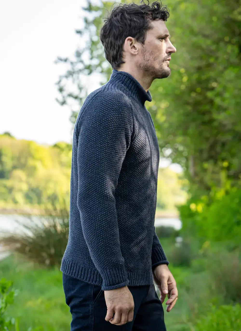 Fisherman Cashmere Seed Stitch Roll Neck Sweater