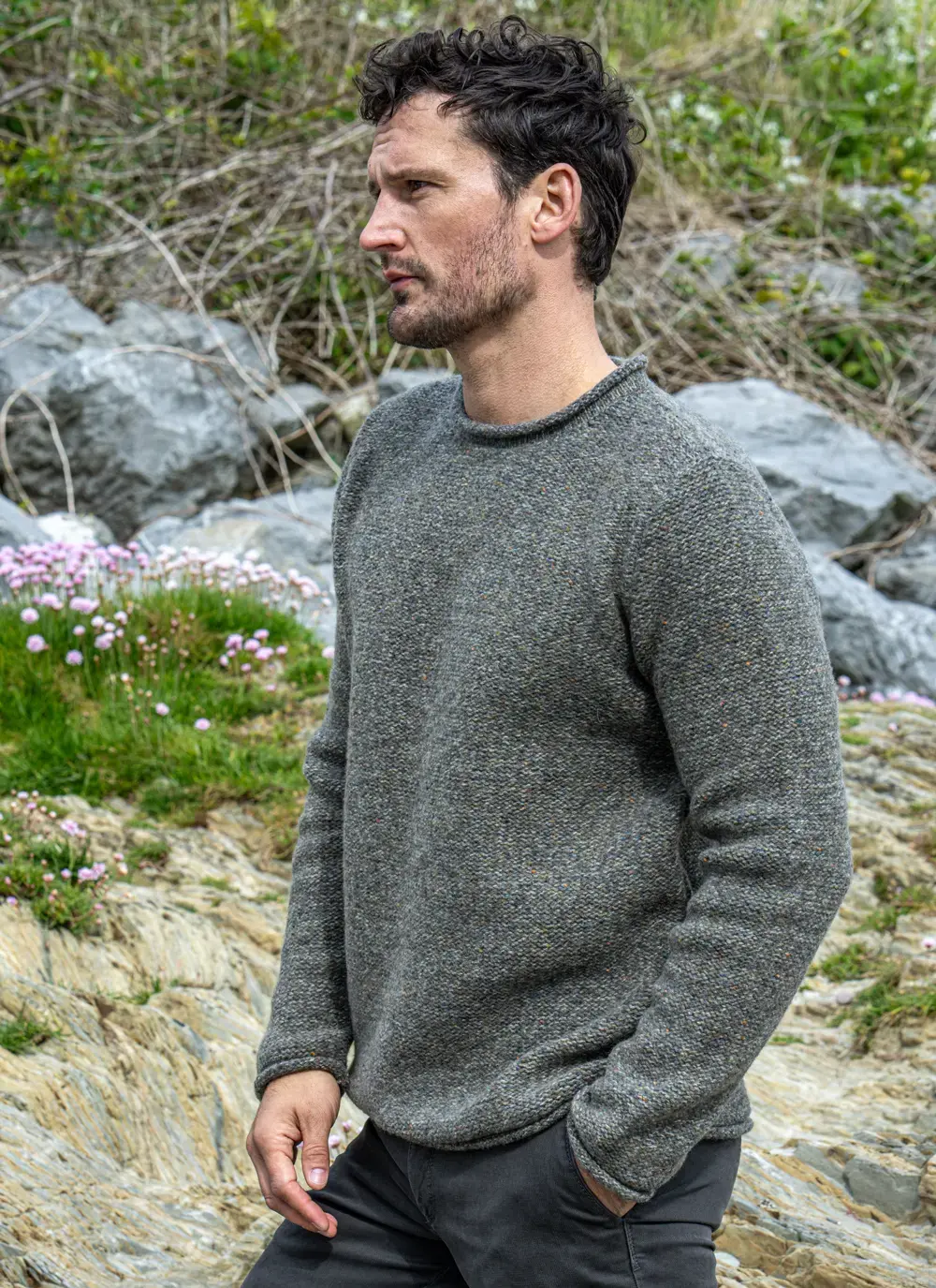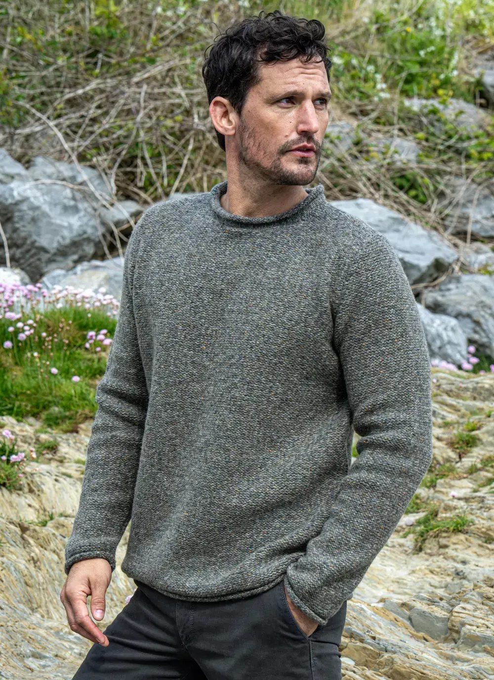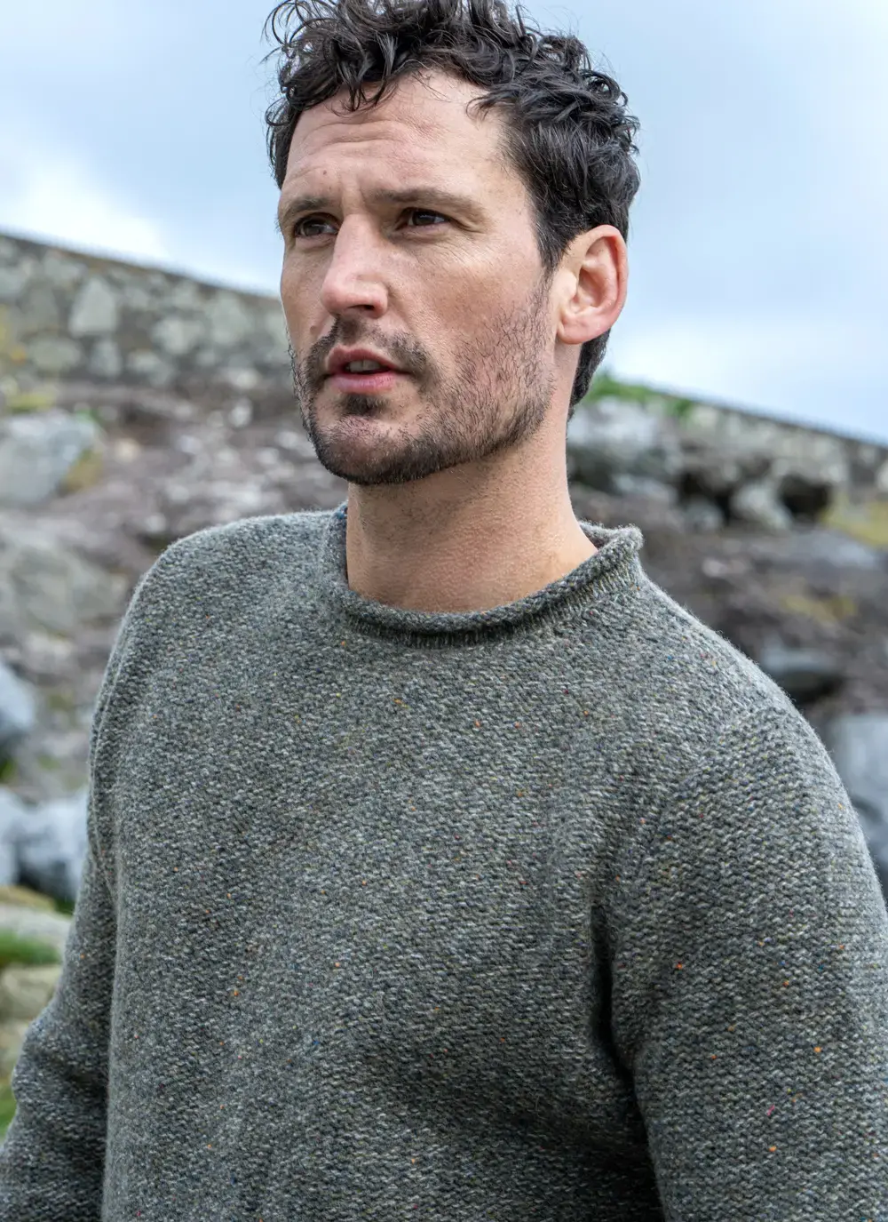 Donegal Fleck Wool Cashmere Roundstone Sweater