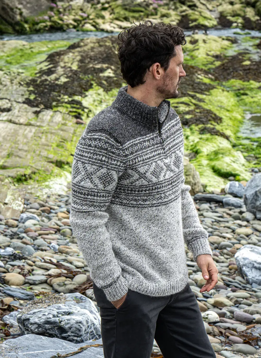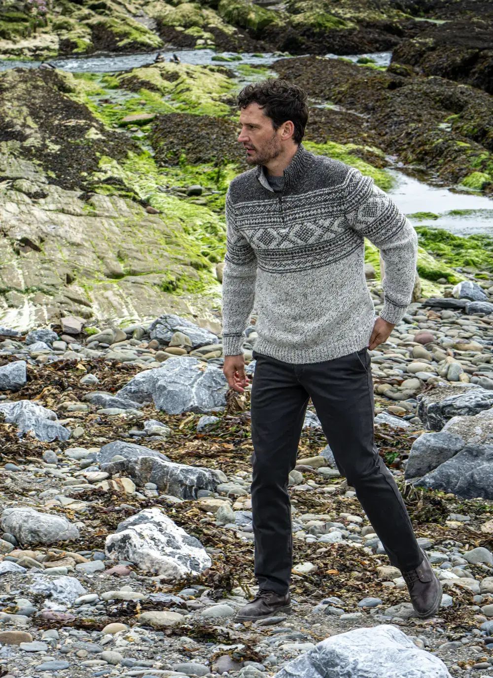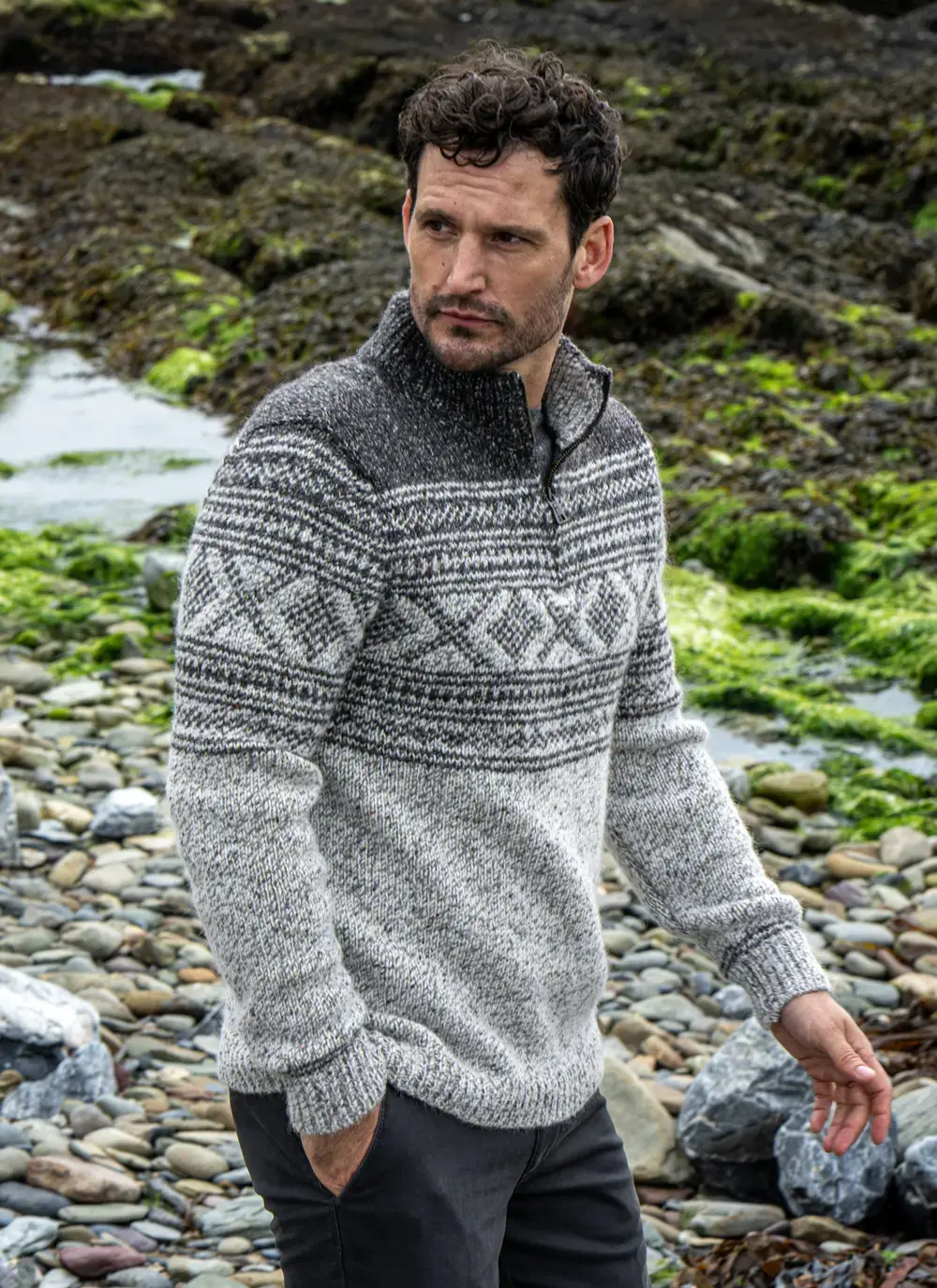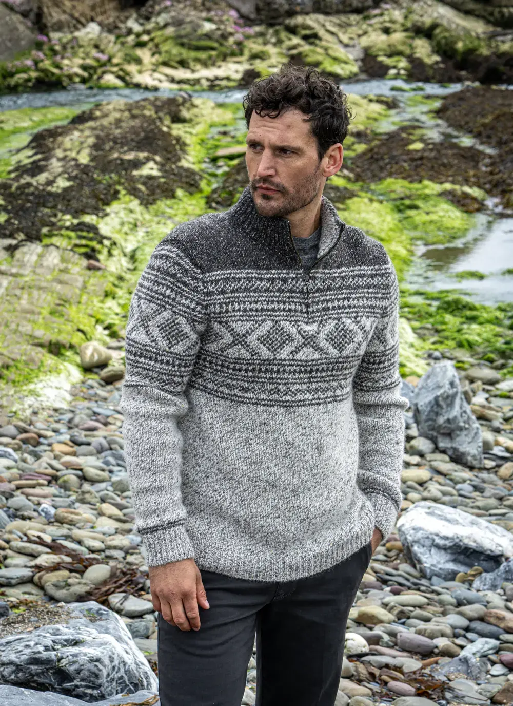 Fisherman Zip Neck Sweater With Jacquard Pattern