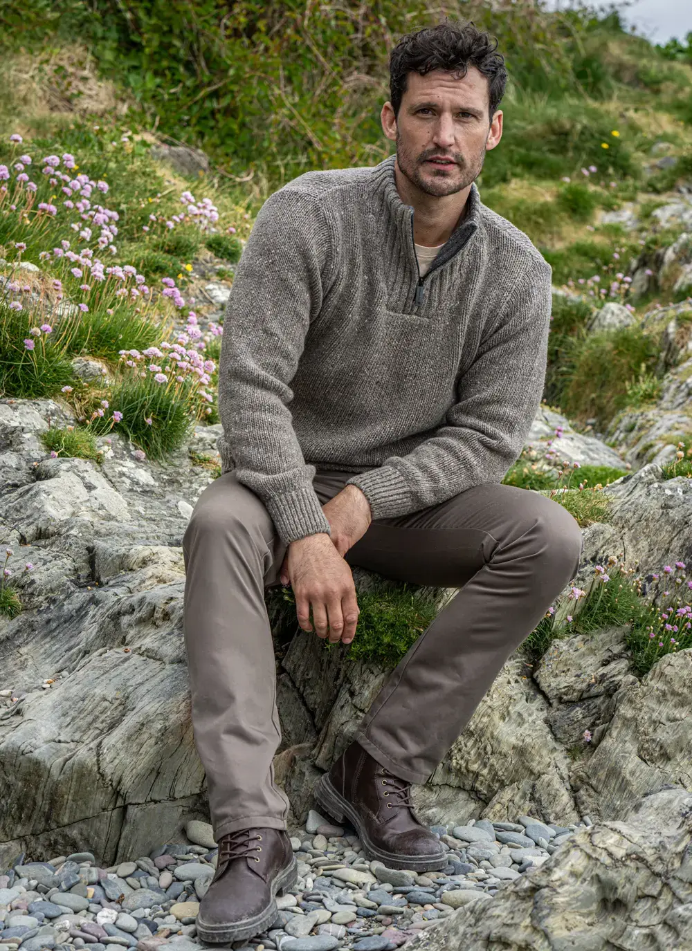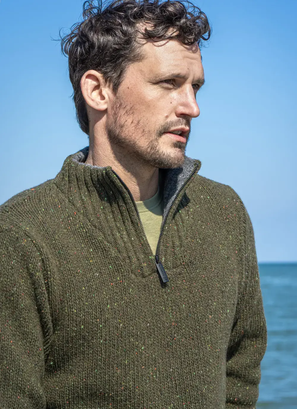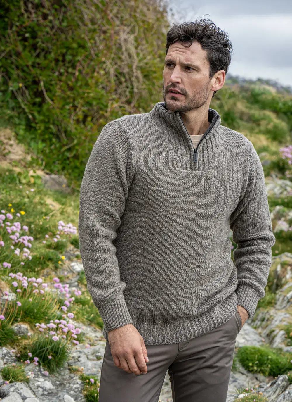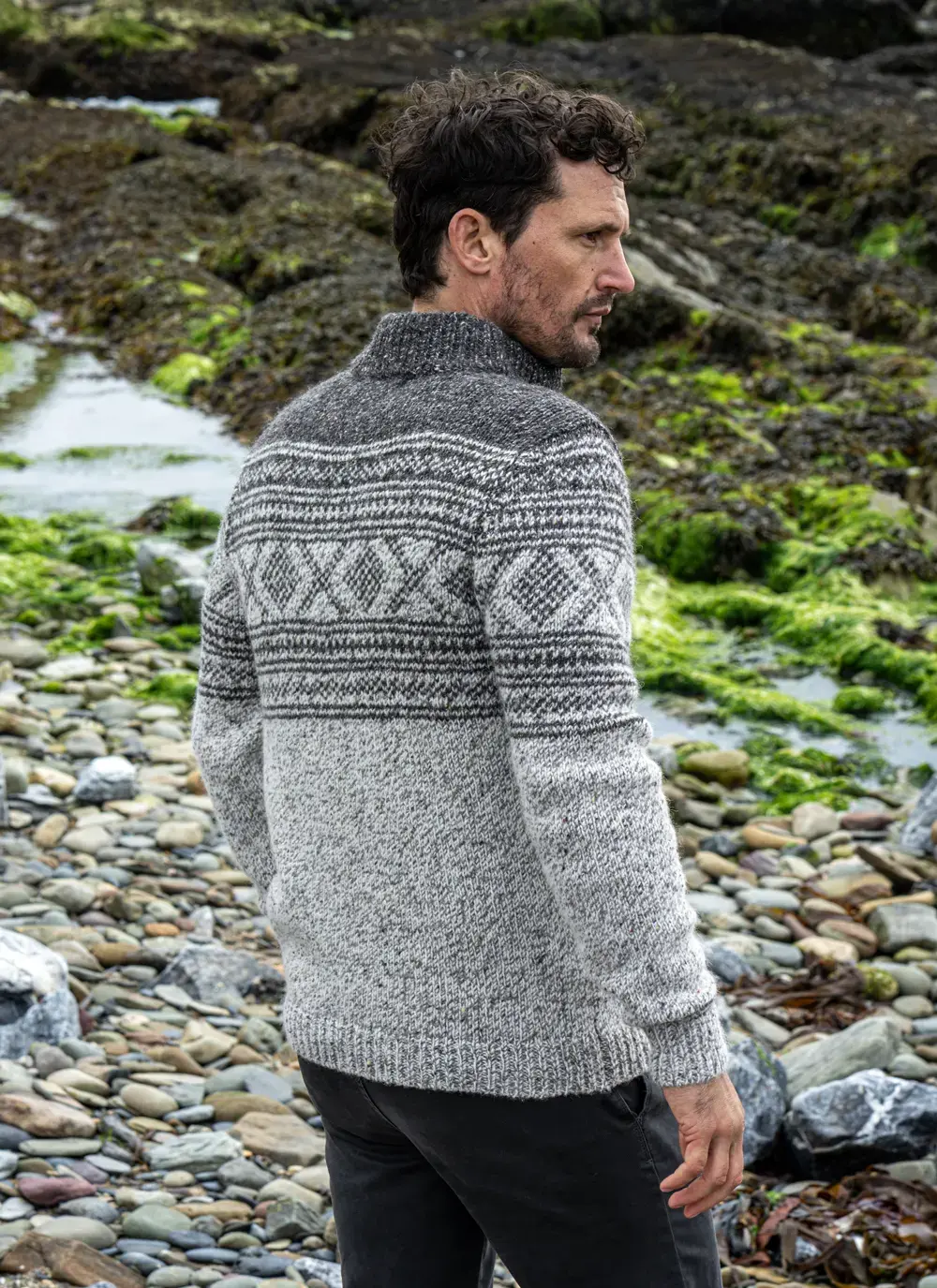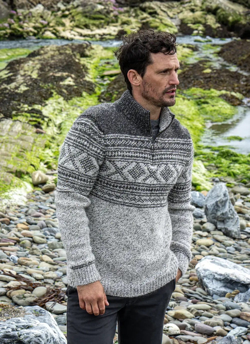 Fisherman Zip Neck Sweater With Jacquard Pattern