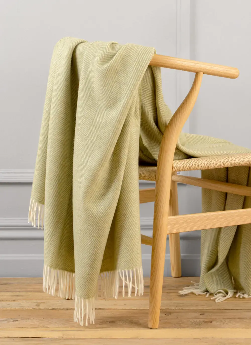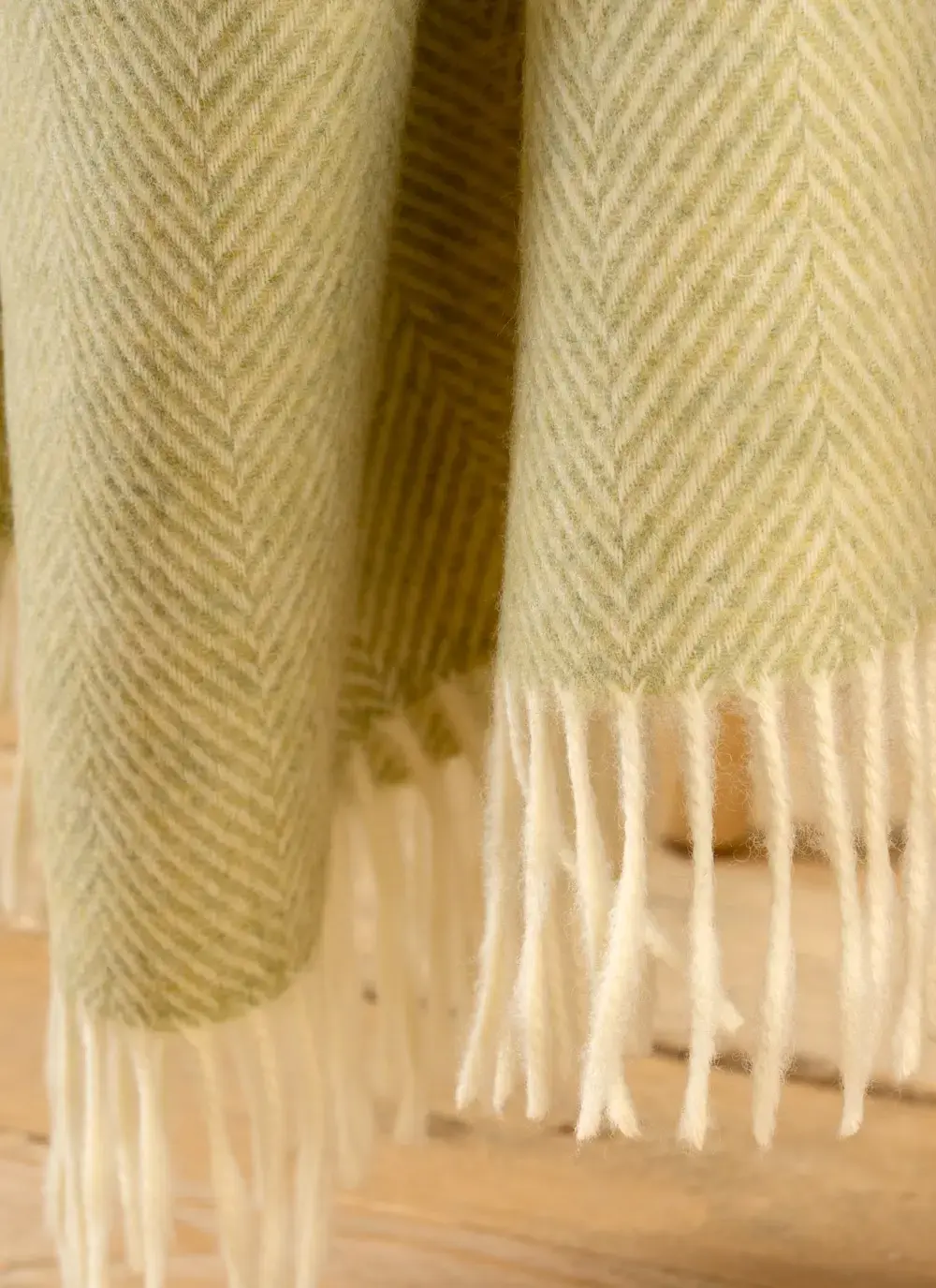 Sage Herringbone Merino Wool Throw
