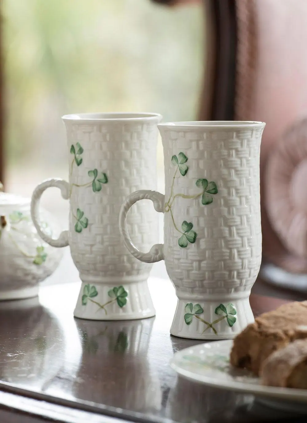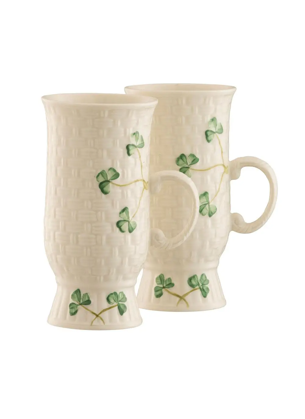 Belleek Shamrock Irish Coffee Mugs Pair