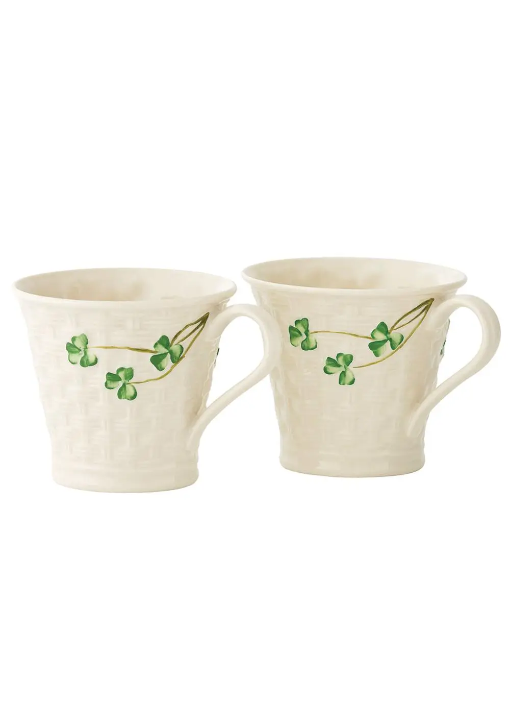 Belleek Shamrock Basketweave Mugs Set of 2